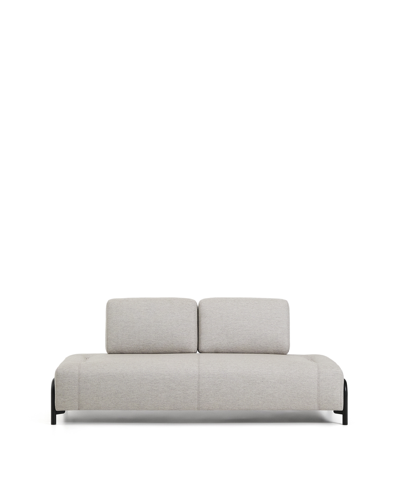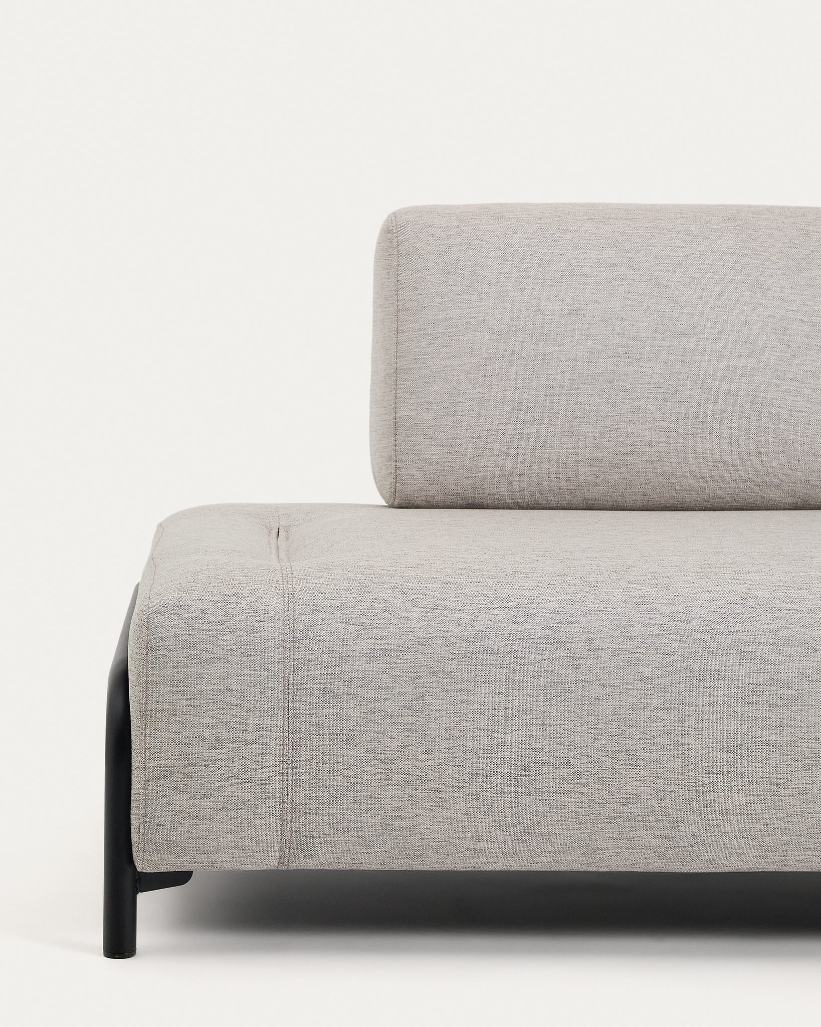 2-местный модуль дивана Compo из шенилла серо-бежевого цвета с черным каркасом, 200 см