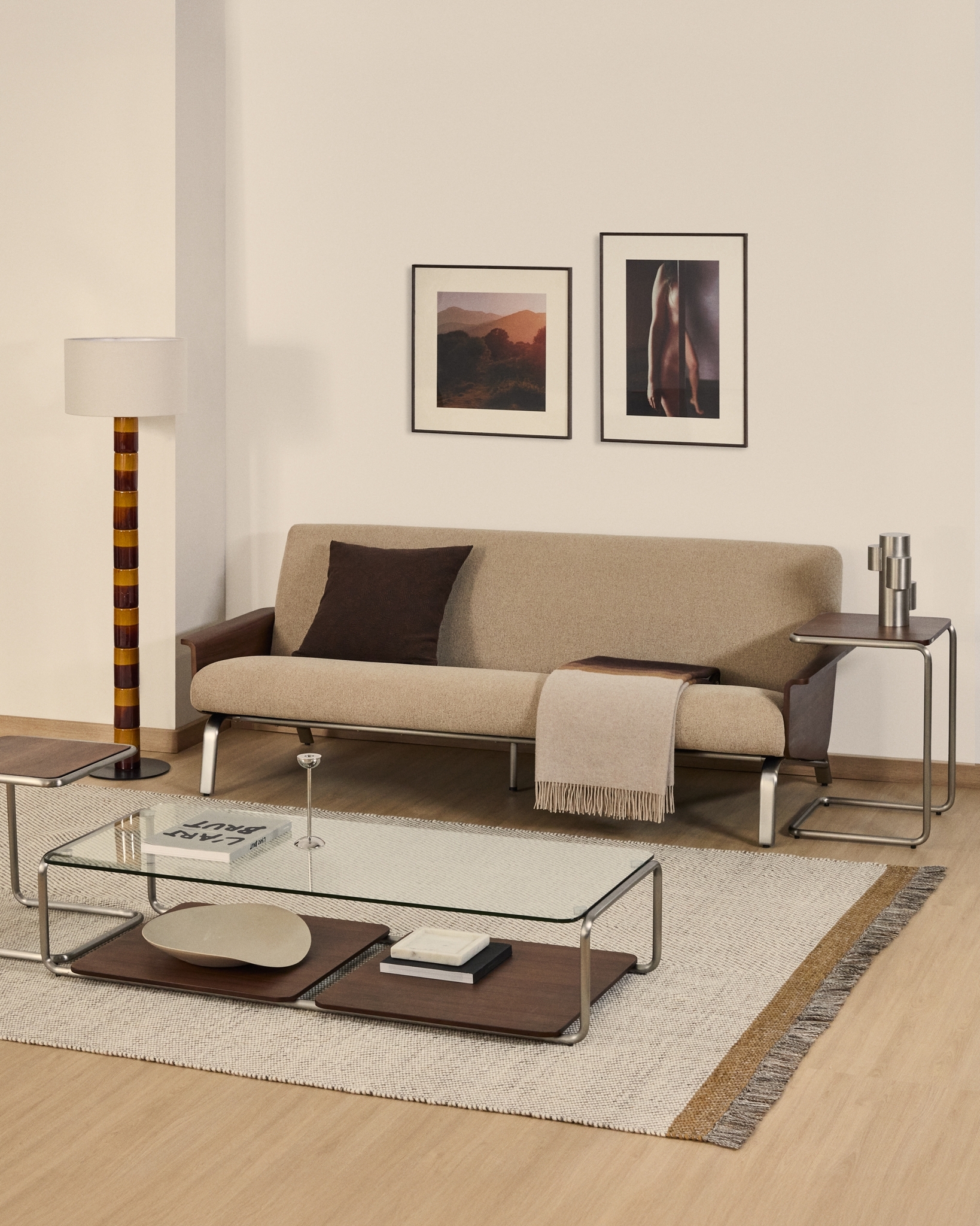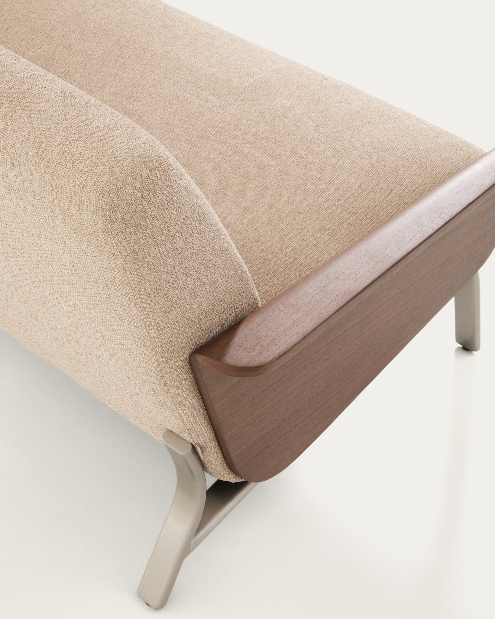3-местный диван Amsen светло-коричневый с подлокотниками из шпона ореха