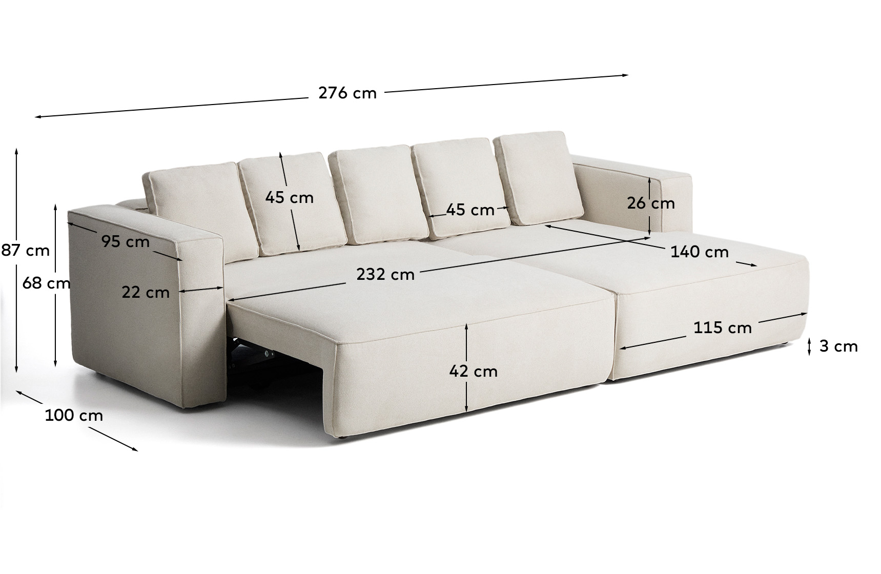 Этот диван-кровать отличается прямыми линиями и внушительными размерами. Дизайн подлокотников и спинки предлагает современную и уютную интерпретацию с прочными объемами и сбалансированными пропорциями. Обивка из мелкозернистого шенилла приятна на ощупь и обработана защитой от пятен, что облегчает чистку и уход. Диван имеет среднюю жесткость благодаря наполнителю из пеноматериала средней и высокой плотности плотностью 28 кг/м³ и системе пружин No-Sag, которая обеспечивает равномерную поддержку по всей поверхности. Подушки спинки имеют съемные чехлы для большей практичности и наполнены силиконовым волокном и перфорированным пеноматериалом, что обеспечивает дополнительную мягкость и гибкость. Функция раскладывания кровати интуитивно понятна и легка благодаря инновационной системе Y-open. Синхронизированный механизм раскладывания превращает диван в просторную кровать размером 140 x 232 см легко и всего за несколько секунд. Каркас изготовлен из сертифицированной древесины FSC Mix Credit, которая сочетает в себе материалы из сертифицированных FSC лесов и контролируемой древесины, что гарантирует ответственное происхождение. Этот диван-кровать произведён в Европе, что означает локальное производство и снижение выбросов CO₂ для снижения воздействия на окружающую среду. Ткань от поставщика, сертифицированного по стандарту OEKO-TEX® STANDARD 100, гарантирует экологичность производства.