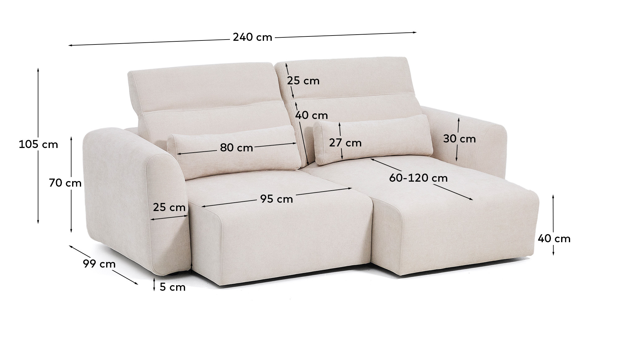 Этот диван сочетает в себе дизайн, комфорт и технологии. Его сиденья с электроприводом и подголовники с ручным откидыванием позволяют вам в любой момент изменить положение. Это компактный раздвижной диван, сочетающий в себе наименьшую глубину на рынке с максимальным расширением в разложенном виде: в сложенном состоянии глубина составляет 99 см, а в разложенном — увеличивается ещё на 60 см. Сиденье можно выдвигать в любом положении. Управление движением осуществляется с помощью проводного пульта.