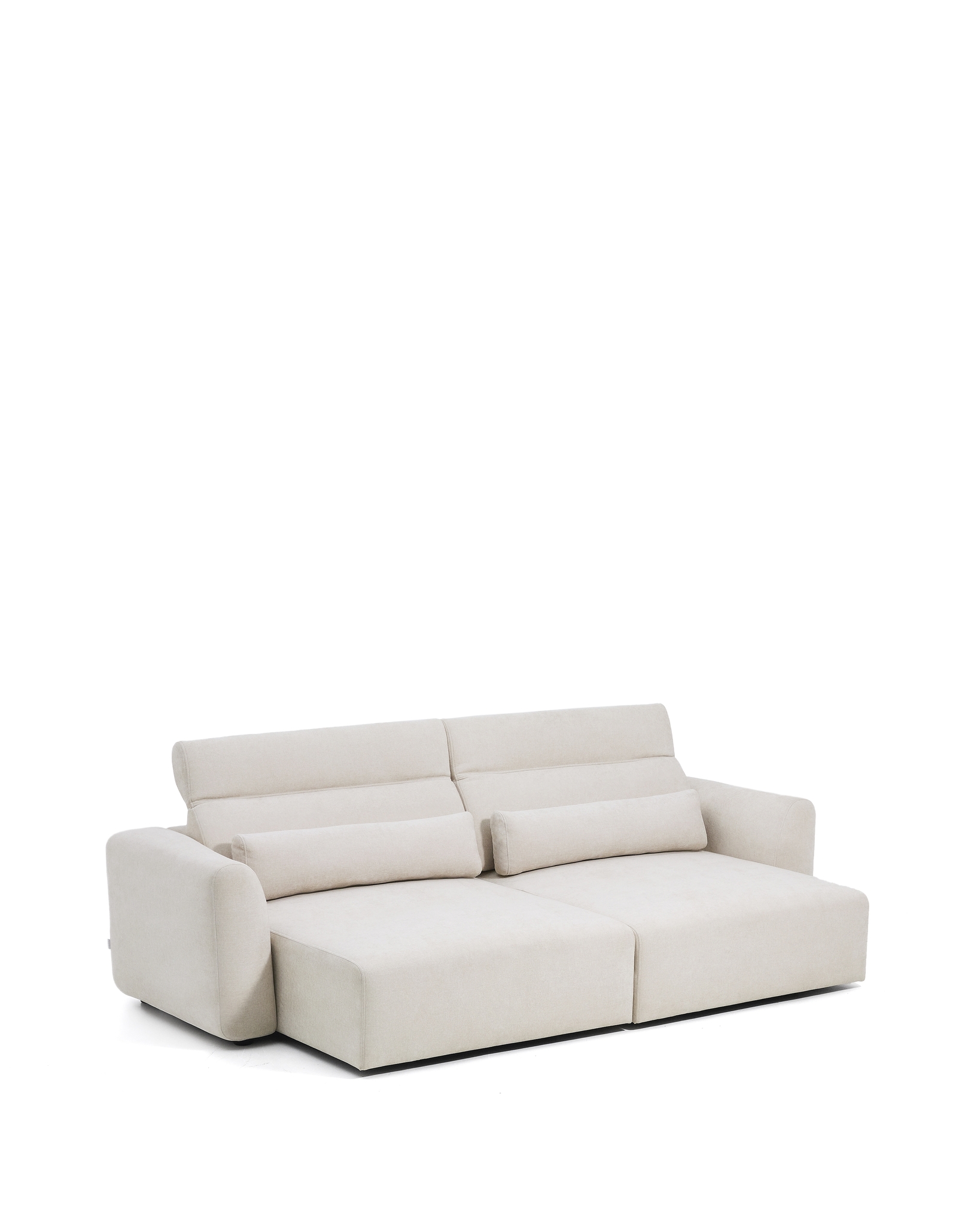 Этот диван сочетает в себе дизайн, комфорт и технологии. Его сиденья с электроприводом и подголовники с ручным откидыванием позволяют вам в любой момент изменить положение. Это компактный раздвижной диван, сочетающий в себе наименьшую глубину на рынке с максимальным расширением в разложенном виде: в сложенном состоянии глубина составляет 99 см, а в разложенном — увеличивается ещё на 60 см. Сиденье можно выдвигать в любом положении. Управление движением осуществляется с помощью проводного пульта.