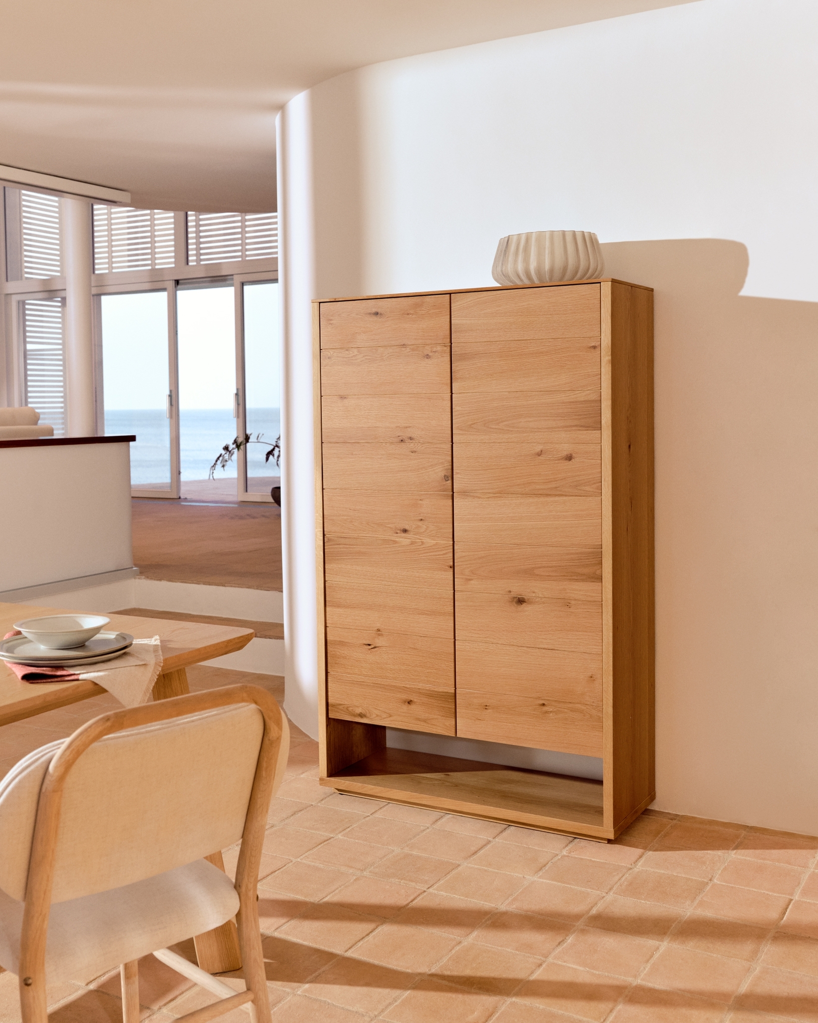 Команда Kave Home разработала коллекцию Alguema, которая внушает умиротворение и умиротворение благодаря своему минималистскому стилю и отделке из натурального дубового шпона.