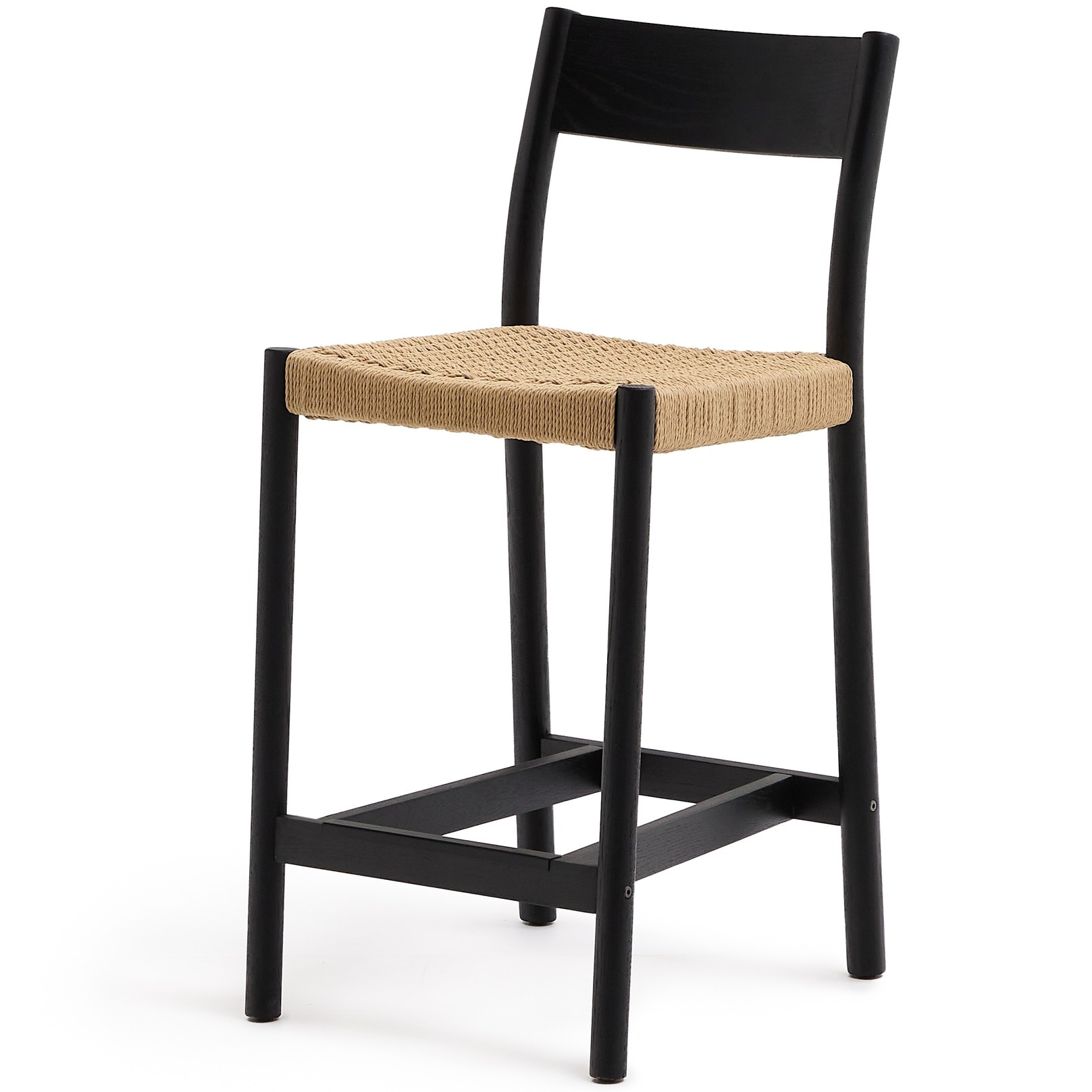 Analy Полубарный стул из массива дуба с черной отделкой и сиденьем из веревки 65 см