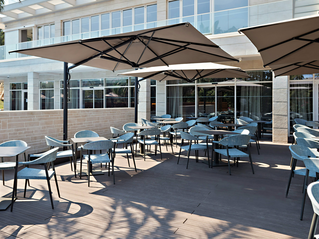 - Инновационный выдвижной механизм позволяет открывать и закрывать зонт одним движением, не задевая мебель под ним.