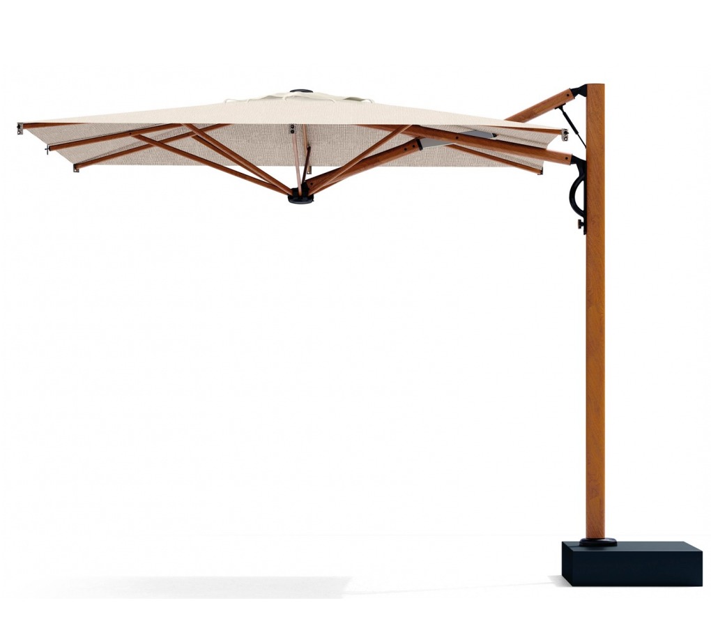Новинка 2021 года от фабрики SCOLARO - уникальный зонт Astro Timber - союз инновационного будущего и традиционной классики. Гармонично вписывается во все возможные открытые пространства, где необходимо создать тень. Больше не нужны механизмы и тросы для открытия зонта, данная новинка работает на газовом поршне. Легким нажатием кнопки зонт плавно открывается и закрывается. Кроме того, новая система открытия-закрытия позволяет не убирать из-под зонта мебель, зонт аккуратно придвигается к опоре и не нависает над мебелью. Особенности: Каркас и спицы выполнены из алюминия с отделкой под дерево, детали - из нержавеющей стали, аксессуары - из нейлона ABS, винты из нержавеющей стали и никелированной латуни. Купол выполнен из акрила 350 г/м² с пропиткой. Варианты цвета: слоновая кость (A1), терракота (T2), бордовый (T3), серо-коричневый (T6), белый (T7), серебристо-серый (T8), антрацит (T9), черный (S1). Цена на сайте указана для зонта с куполом в цвете слоновая кость (A1) без волана. По запросу доступно выполнение купола из акрила Special Collection класса A и B (минимальный заказ 5 шт.). Инновационный выдвижной механизм позволяет открывать и закрывать зонт одним движением, не задевая мебель под ним. Технические характеристики: высота до кромки открытого зонта: 2350 мм; высота до кромки закрытого зонта: 850 мм; общая ширина: 3800 мм (включая базу); общая длина: 2900 мм. Посмотреть технические характеристики. Посмотреть инструкцию по установке зонта. Таблица выбора утяжелительных баз для стабилизации зонта. В комплект поставки входит: Каркас с поворотным механизмом (360°). Купол, механизм открытия-закрытия, вентиляционная заглушка (ветровой клапан). Система быстрой замены спиц "Easy Change". База для утяжеляющих плит. Открыть инструкцию поэксплуатации уличных зонтов. Компания Scolaro создана 40 лет назад и была известна как ремесленное производство деревянных зонтиков. Традиционные позиции и современные знания позволили Scolaro выпускать широкий спектр зонтов, которые позволяют не только укрываться от солнца и дождя, но и являются прекрасным дополнением интерьера стильных заведений. Дизайн, новые технические решения и сочетание высококачественных материалов имеют решающее значение для технической эволюции зонтов Scolaro, процесс производства которых является полностью итальянским. Наша компания - официальный эксклюзивный дистрибьютор фабрики Scolaro Mario & Fabio srl. в России. На все зонты компании Scolaro предоставляется сервисное и гарантийное обслуживание. Для того, чтоб зонт прослужил долго, воспользуйтесь инструкциями по эксплуатации и хранению зонтов.