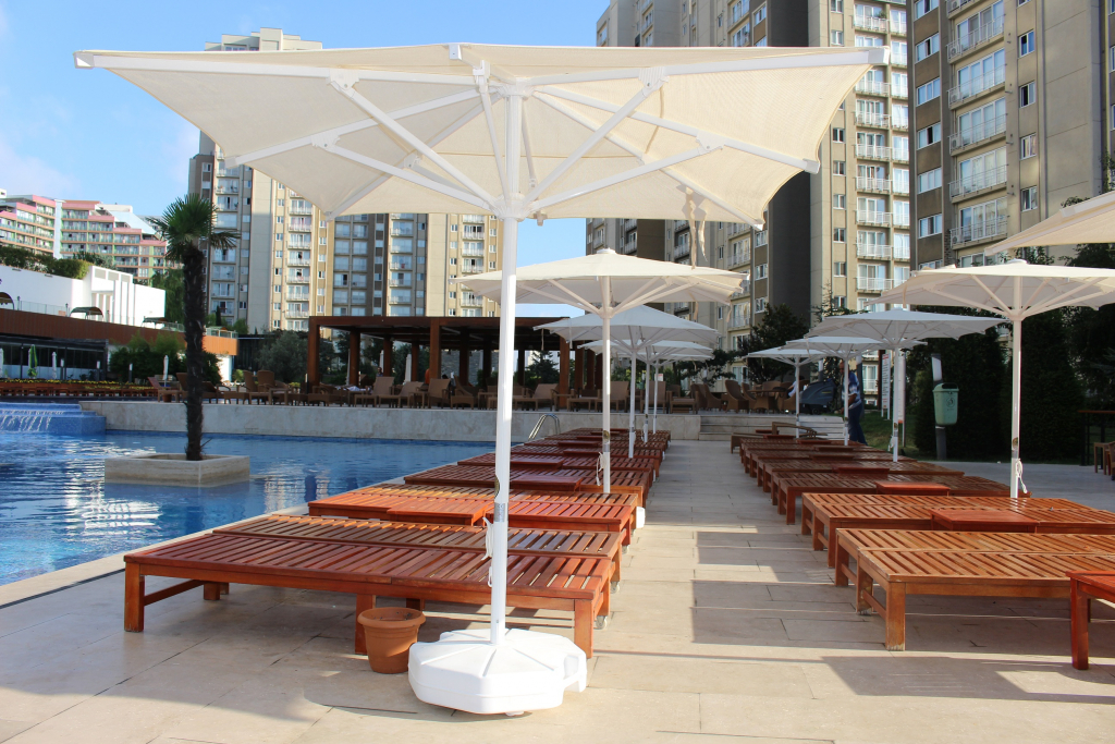 Avocado - профессиональный зонт с центральной опорой из алюминия, что обеспечивает высокую устойчивость модели. Он защитит от ярких солнечных лучей и создаст приятную затененную атмосферу в частных садах, открытых летних площадках кафе, баров и ресторанов, зоны возле бассейна. Зонт Avocado более чем удовлетворит ваши потребностиблагодаря своей доступности и эстетике, прочности и долговечности.