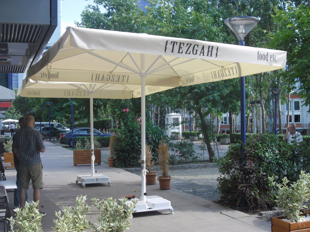 - Центральная опора Ø50 мм и толщиной стенки 2 мм выполнена из алюминия. Алюминий окрашен и прошел специальную термообработку, которая повышает прочность и коррозионную стойкость зонта.