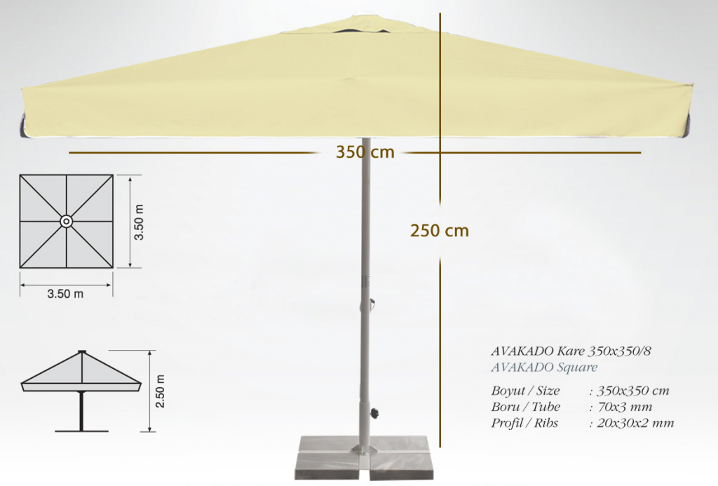 Avocado - профессиональный зонт с центральной опорой из алюминия, что обеспечивает высокую устойчивость модели. Он защитит от ярких солнечных лучей и создаст приятную затененную атмосферу в частных садах, открытых летних площадках кафе, баров и ресторанов, зоны возле бассейна. Зонт Avocado более чем удовлетворит ваши потребностиблагодаря своей доступности и эстетике, прочности и долговечности.