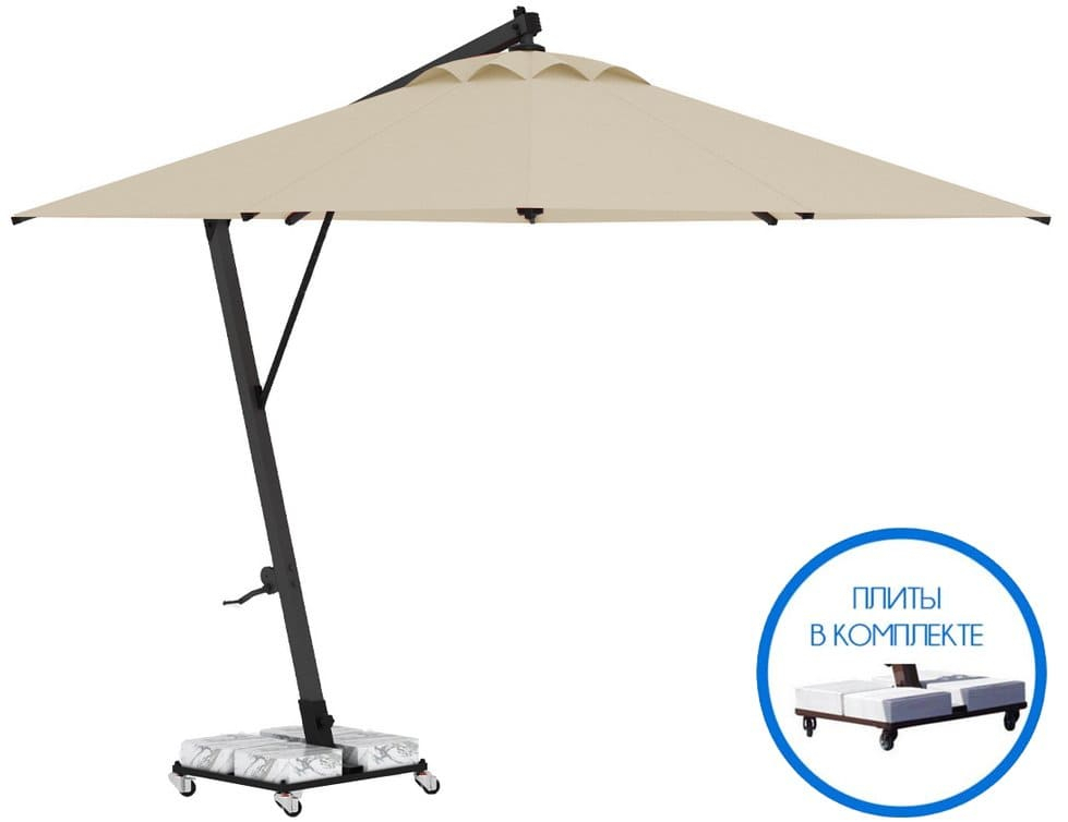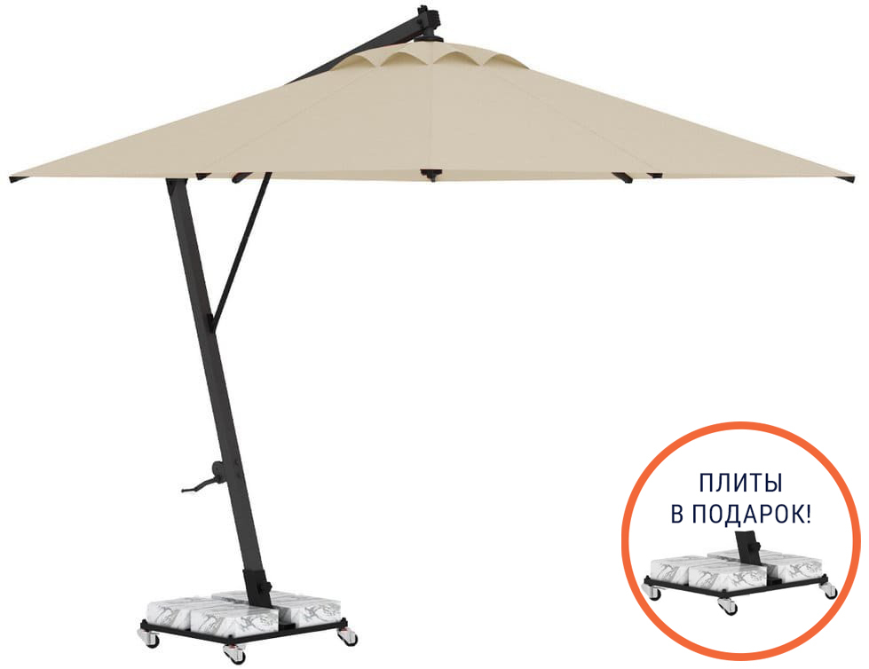 Banana - профессиональный зонт с боковой опорой из алюминия, что обеспечивает высокую устойчивость модели. Он защитит от ярких солнечных лучей и создаст приятную затененную атмосферу в частных садах, открытых летних площадках кафе, баров и ресторанов, зоны возле бассейна.