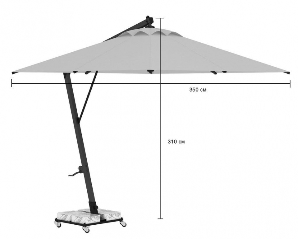- Боковая опора сечением 70х70 мм и толщиной стенки 2.5 мм выполнена из окрашенного алюминия со специальной термообработкой, которая повышает прочность и коррозионную стойкость зонта.