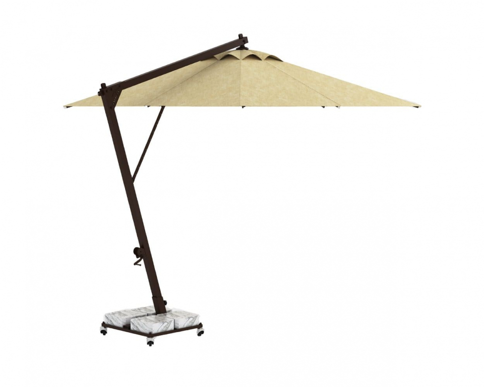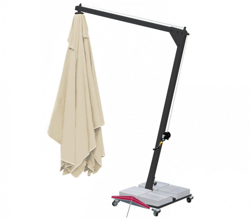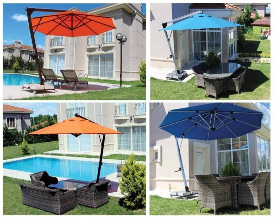 Наличие боковой опоры зонта гарантирует, что тень зонта используется более эффективно, чем с зонтами с центральной стойкой. Хотя это корпоративный продукт, предпочитаемый сетевыми магазинами, такими как кафе и рестораны, зонт Banana украшает многие сады и террасы, представляет собой модель зонта, которая выделяется своими размерами и качеством. Это очень востребованная модель по таким причинам, как его практичность и эргономика, возможность открывать и закрывать, не мешая тем, кто находится под зонтом, а также простота транспортировки и перемещения благодаря утяжелительной базе с колесным тормозом.