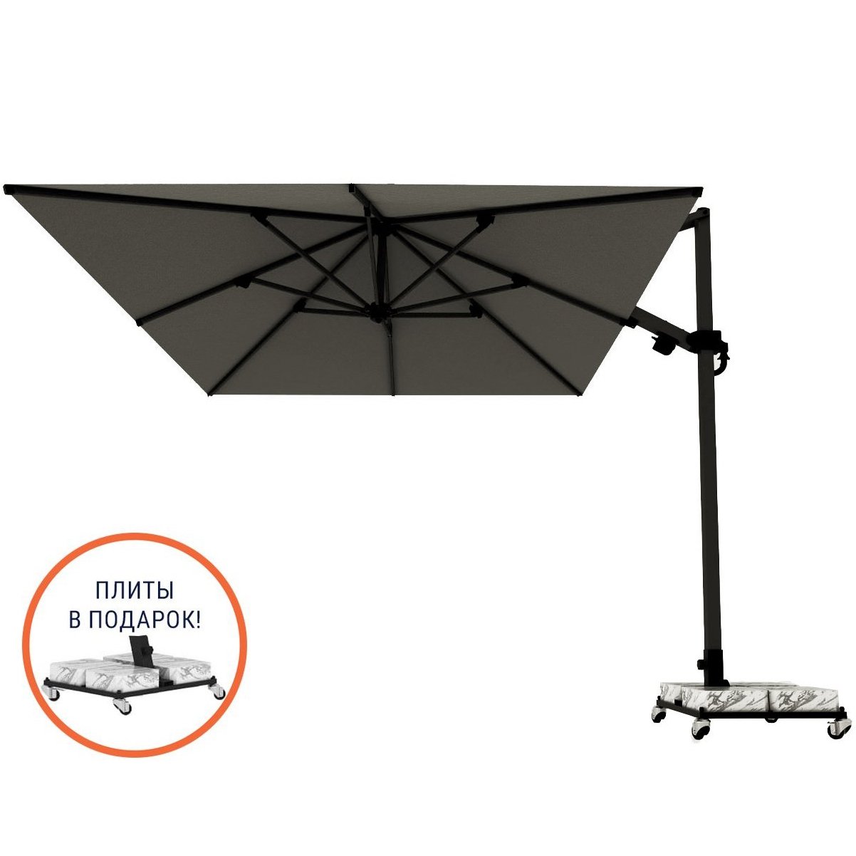 Обращаем Ваше внимание! Плиты идут в подарок к зонту! В норме допускаются незначительные сколы и царапины мрамора по периметру, т.к. мрамор - это природный материал. На плиты рекламации не принимаются, Вы имеете право безвозмездно отказаться от них.
