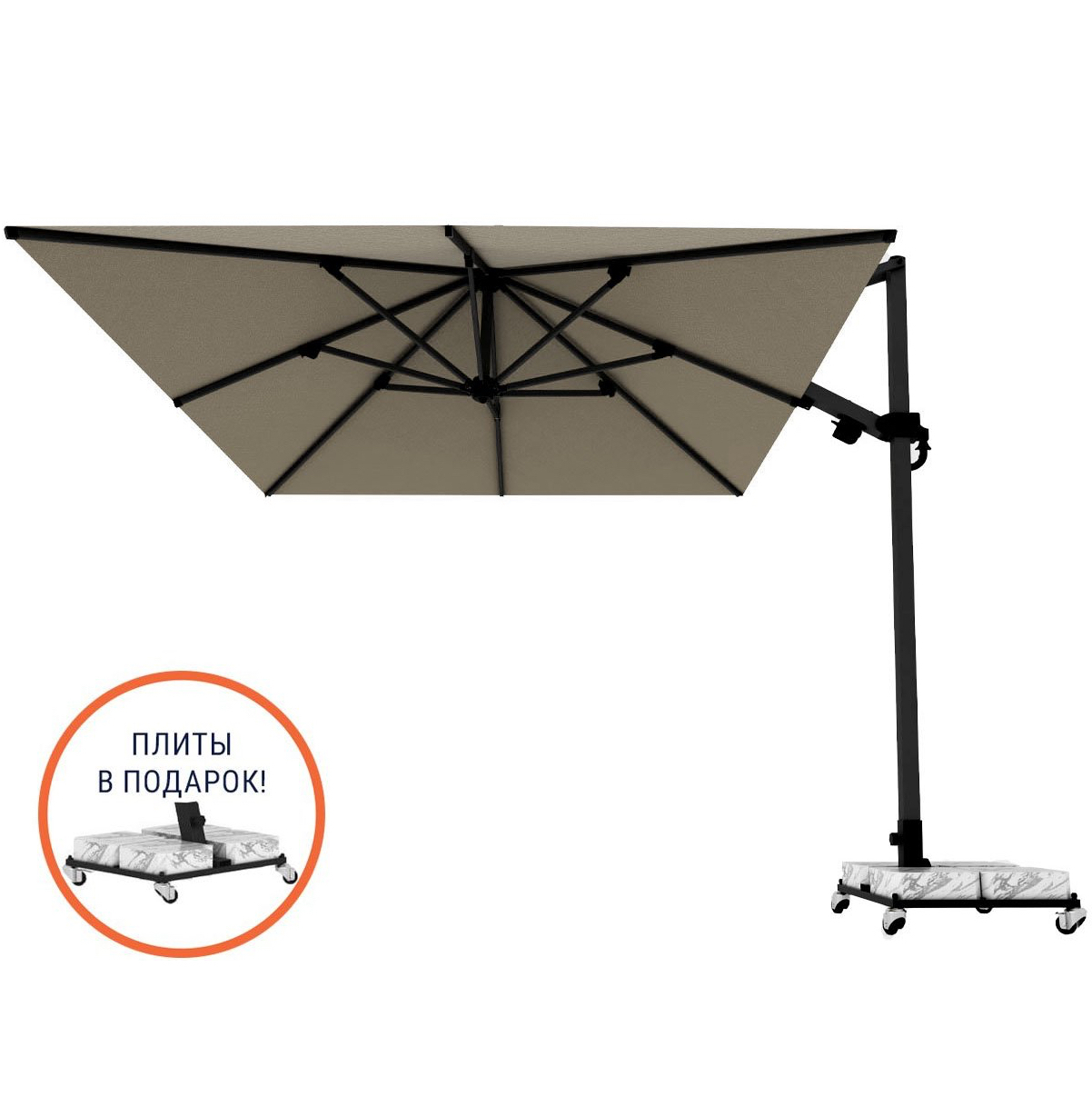 Зонт для кафе профессиональный Banana Plus, 300х300 см, черный, светло-серый