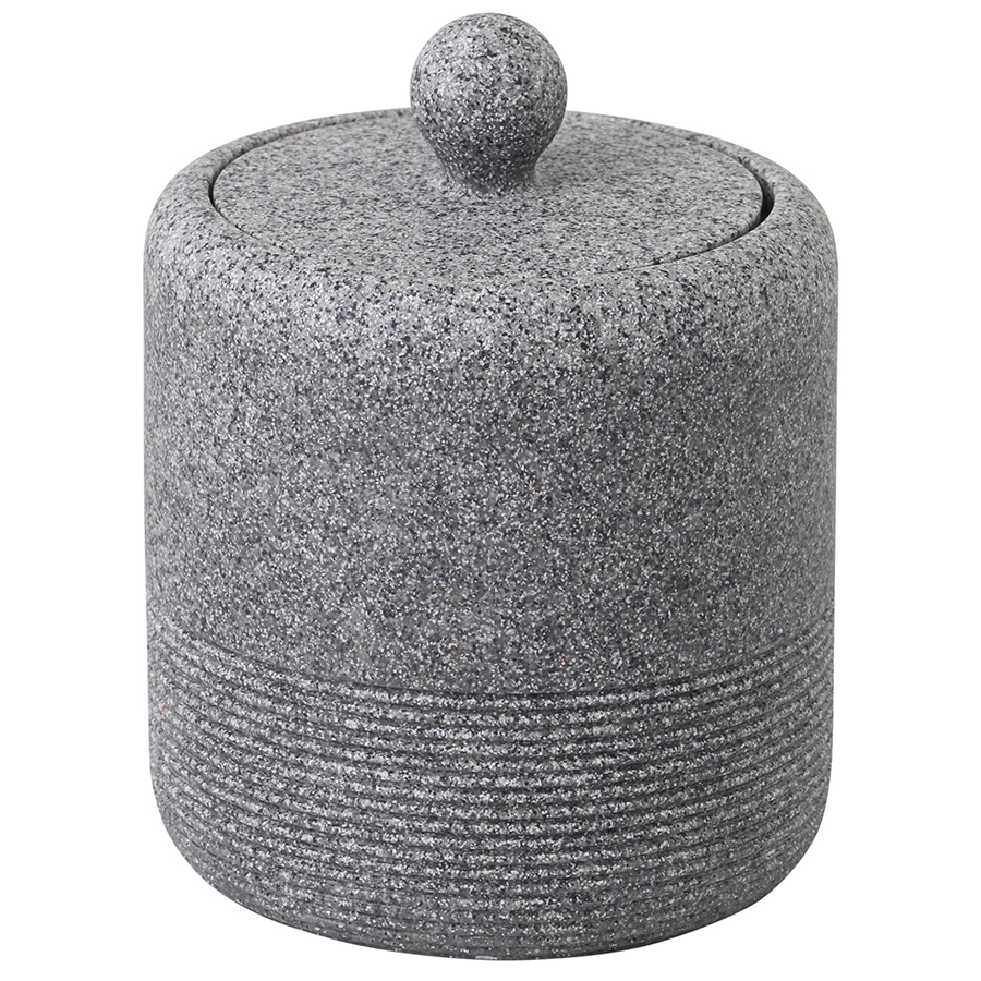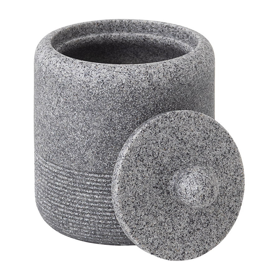 Банка для хранения Loup имеет корпус и крышку из полирезина, стилизованного под натуральный камень графитового оттенка.