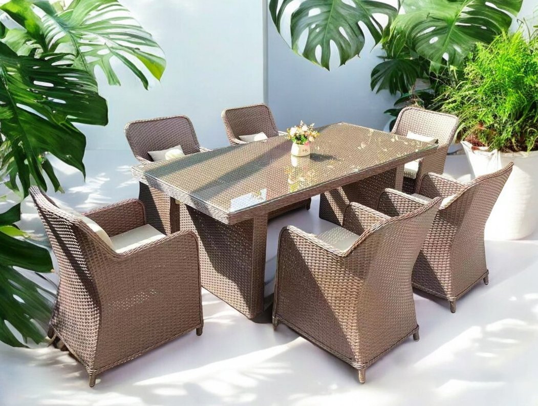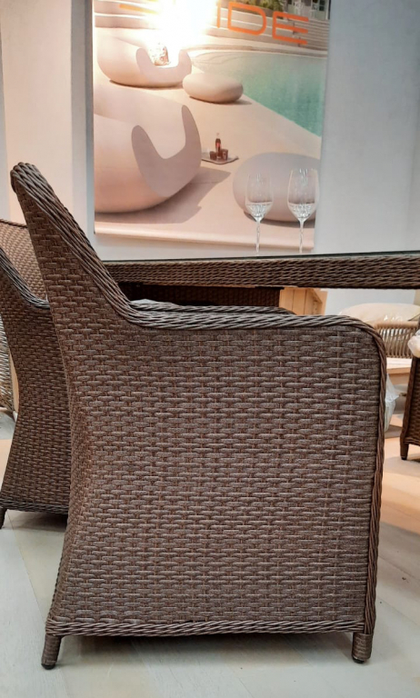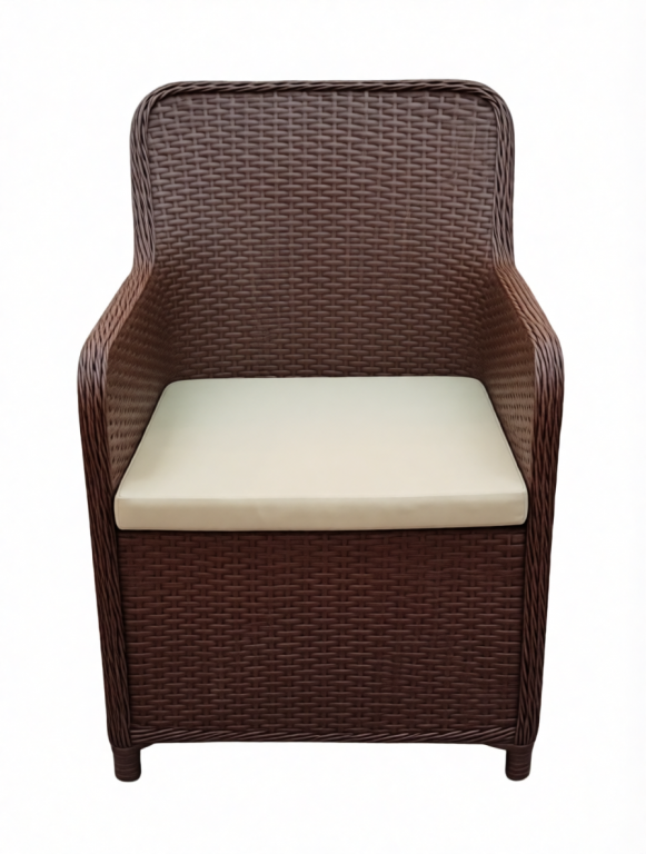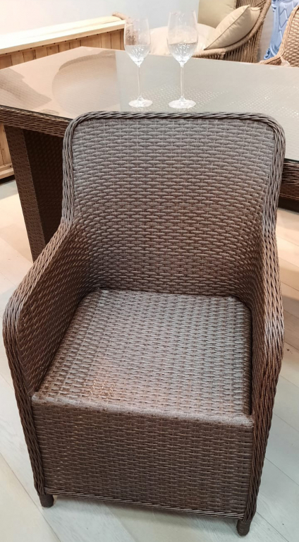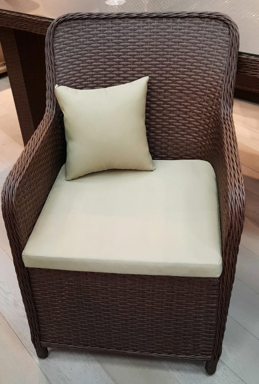 Обеденное кресло Barcelona имеет алюминиевую конструкцию с плетением из искусственного ротанга. Оно идеально подходит для обустройства обеденной зоны на открытом пространстве. Характеризуется высокой устойчивостью к внешним условиям, долговечностью и длительным сроком службы. Кресло комплектуется подушками на сиденье и маленькими декоративными - на спинке. Цвет ткани: бежевый (А14812).