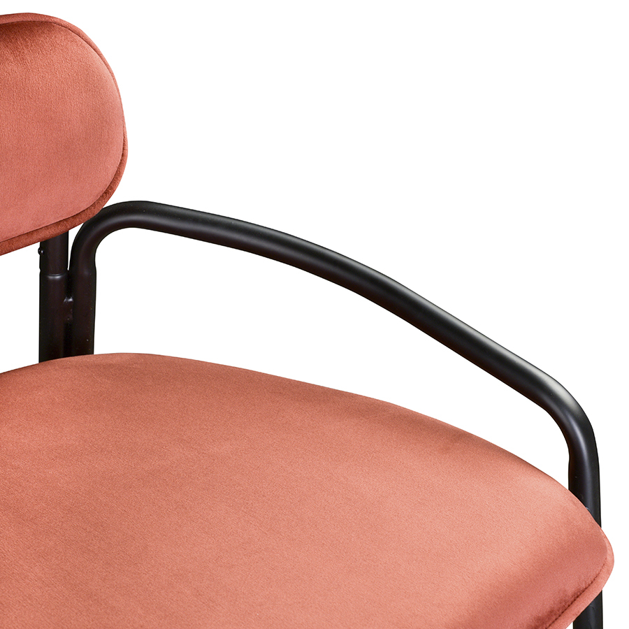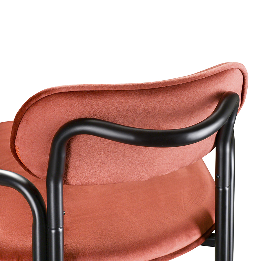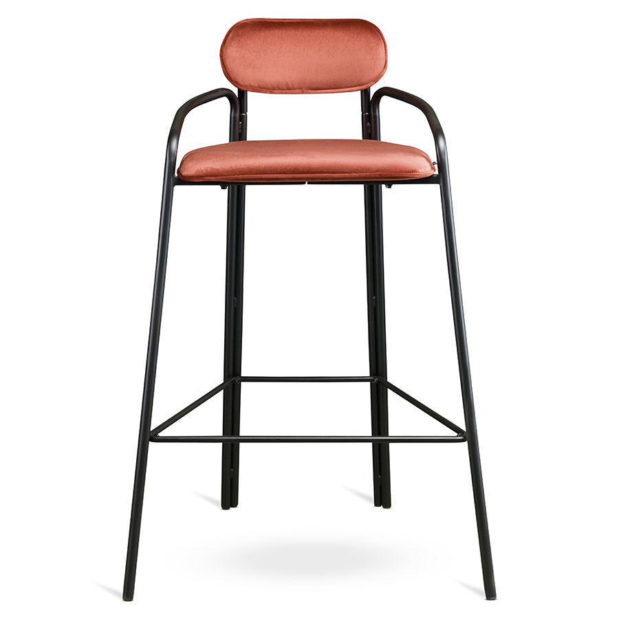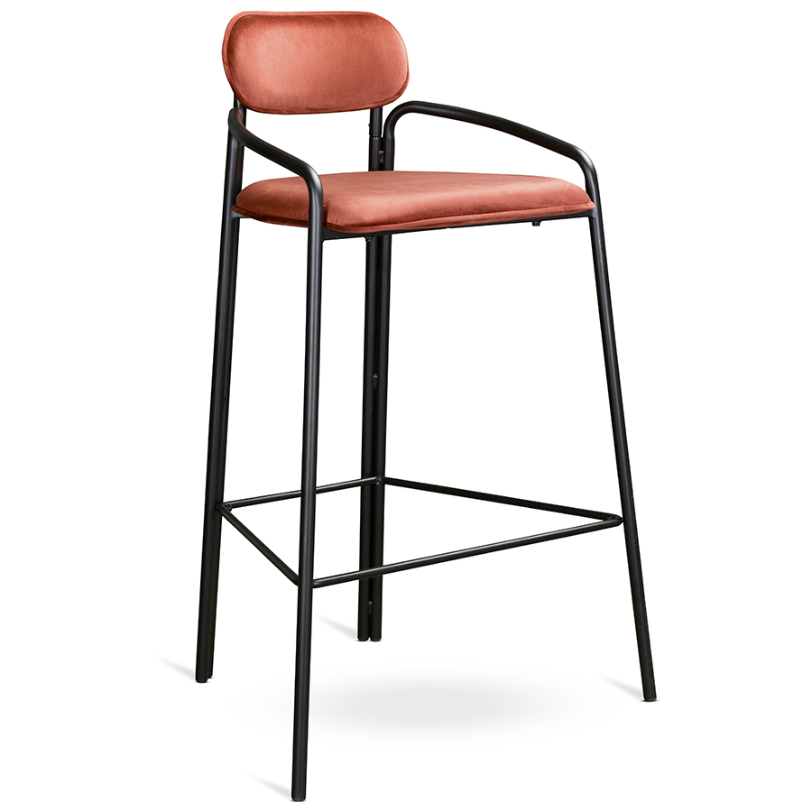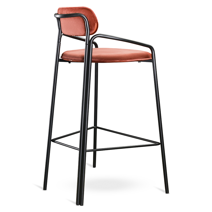 Коллекция Ror - это мебель с индивидуальным характером. Каркас барного стула Round состоит из трех стремящихся вверх элементов, которые образуют округлый, словно окутывающий корпус. За счет отсутствия прямых углов создается легкий, гармоничный силуэт. Стальное основание с порошковым покрытием делает конструкцию прочной и надежной, а мягкий велюр с бархатистой текстурой обеспечивает тактильный комфорт. Ткань обивки обладает высокими показателями износостойкости. Используемый в качестве наполнителя пенополиуретан отличается комфортной плотностью и жесткостью. Все материалы отвечают высоким стандартам практичности, долговечности и экологической безопасности. Стул украсит собой любой современный интерьер: подойдет для оформления кухни, барной зоны в кафе и ресторане. Материалы: сталь, фанера, 100% пенополиуретан, 100% полиэстер. Размеры: 61,8х51,2х97,2 см. Максимальная нагрузка: 102 кг. Цвет: черный/темно-красный. Загрязнения удалять с поверхностей мыльным раствором воды при помощи мягкой губки или салфетки.