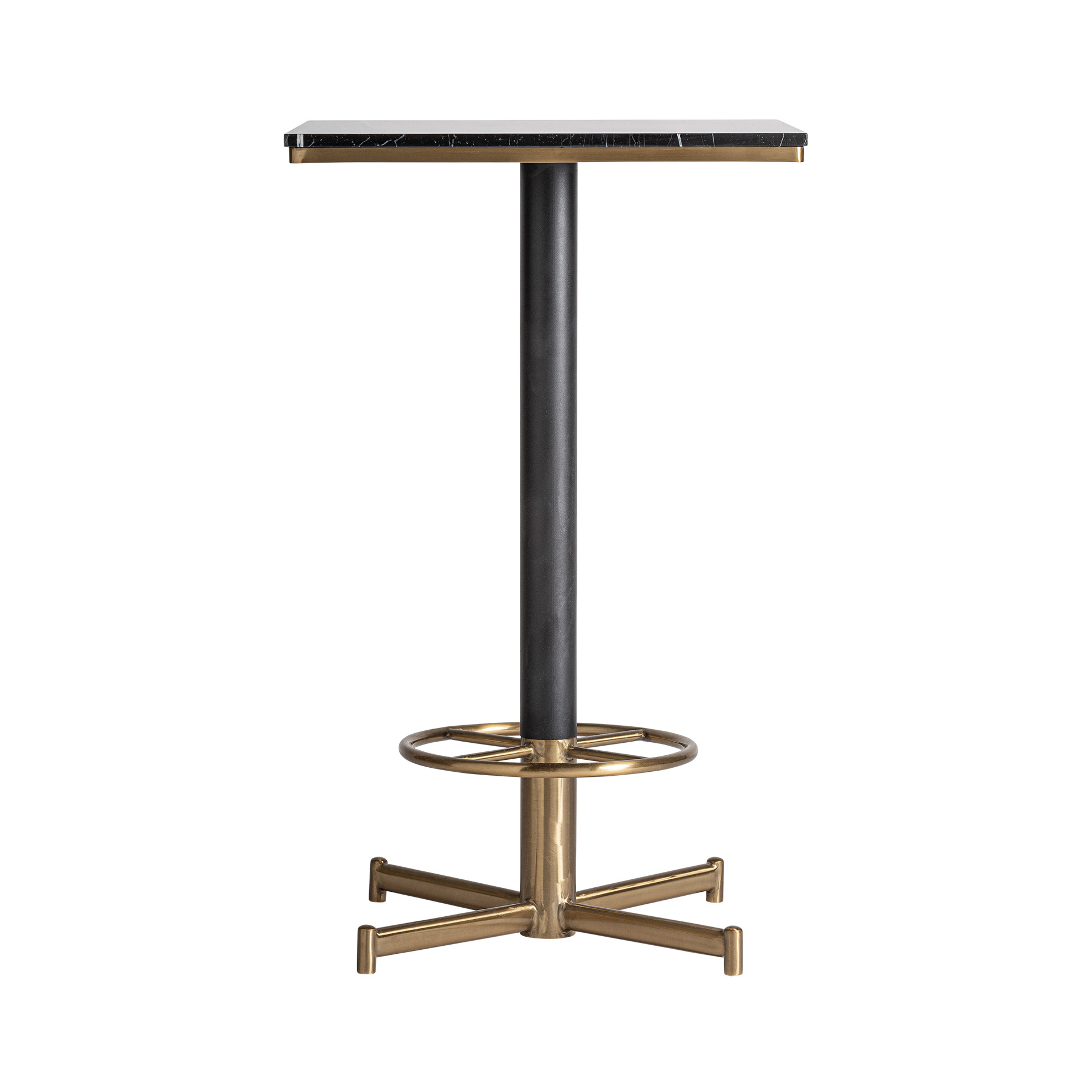 Барный стол. Изготовлен из нержавеющей стали в сочетании с железом и синтетическим мрамором.