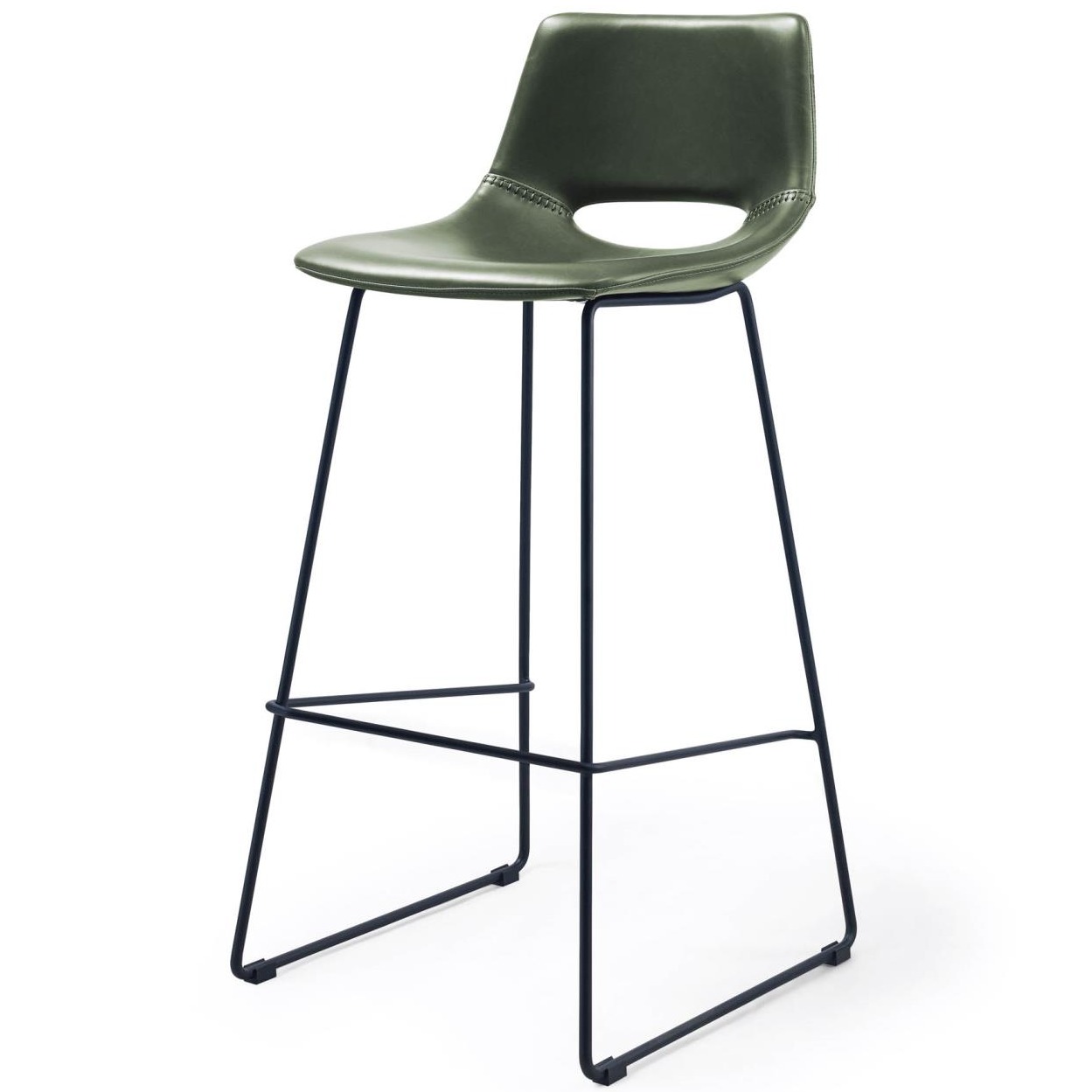 Высокий стул Zahara от фабрики La Forma — удивляющий дизайн для выделения барной зоны. Данная модель забирает полное внимание с первой секунды. Ножки, созданные из металлических рамок в виде трапеций, визуально приподнимают сиденье выше, чем оно есть на самом деле. Кажется, что до него просто не добраться. Но это не так. Такой зрительный эффект и есть главная особенность этого стула. Изделие конструктивно смотрится очень необычно, хотя состоит всего из трех деталей — цельное сиденье и две металлические рамки, выполняющие роль ножек исполинских размеров. Для удобства ножки оснащены поперечное перекладиной. На нее можно поставить ноги или использовать при подъеме на стул. Не стоит опасаться, что данная модель имеет какие-то нестандартные размеры. Все дело в особой конструкции. На самом деле габариты у стула такие: 47 см х 98 см х 50 см (ширина, высота, глубина). Вес изделия — 7,5 кг. Это вполне типичные параметры для барных табуретов. Материал обивки сиденья — синтетическая кожа. Она не боится влаги и загрязнений, что, безусловно, оценят родители маленьких детей. В нижней части спинки присутствует декоративный элемент — овальное отверстие. Функционально оно не играет никакой роли, но явно добавляет стулу оригинальности.