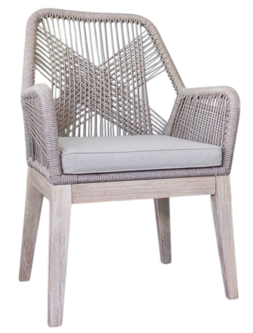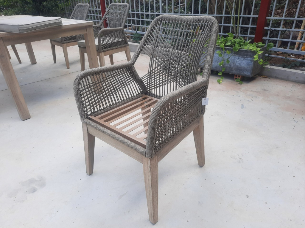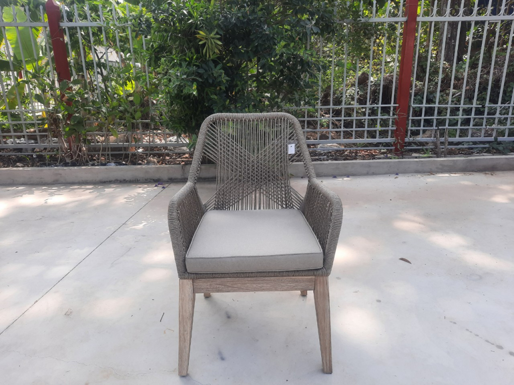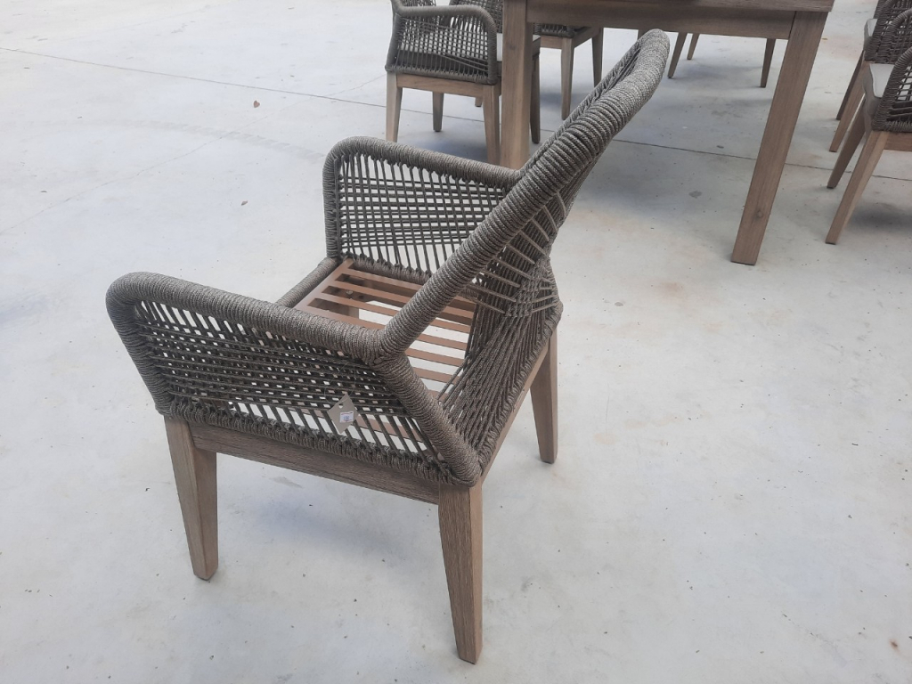 Изготовленное из массива акации, полученного экологически безопасным способом, в сочетании с ручным плетением из роупа, кресло Belle идеально подходит для придания нотки тренда и индивидуальности любому пространству, как в помещении, так и на открытом воздухе. Переплетение веревок на спинке и подлокотниках создает очень гармоничную визуальную игру пересечений и обеспечивает изысканный небанальный эстетический вид. Применение специально разработанных высококачественных материалов позволяет использовать кресло на открытом воздухе в полной безопасности, обеспечивая максимальную защиту от атмосферных воздействий без ущерба для эстетики и комфорта. Кресло Belle будет превосходно смотреться в саду загородного дома, стильной террасе ресторана или уличного кафе. Особенности: Вес кресла - 7.5 кг, вес подушки - 0.6 кг. Каркас выполнен из брашированной акации. Такой способ предполагает декоративную обработку древесины путем обнажения естественного рисунка и удаления мягких волокон дерева с помощью жесткой щетки. Структура рамы: алюминий с порошковым покрытием толщиной 1.2 мм. Плетение выполнено из высококачественной веревки толщиной 5 мм. Состав - полипропилен. Материал характеризуется превосходными прочностью и долговечностью по сравнению с традиционными природными волокнами и, кроме того, практически не требует обслуживания и легко чистится. Кресло комплектуется мягкой подушкой для сиденья толщиной 50 мм с обивкой из полиэстера с кантом. Плотность ткани 250 г/м2. Водоотталкивающая пропитка. Наполнение подушки из быстросохнущего поролона QuickDry, устойчивого к влажности, микробам и плесени благодаря постоянной циркуляции воздуха. Размер подушки 425х475х50 мм. Кресло поставляется в разобранном виде. Открыть инструкцию по уходу.