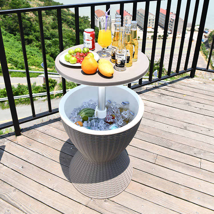 Функциональный столик Belle Cool Bar - это изделие 3-в-1. С закрытой крышкой его можно использовать как журнальный или кофейный столик, а с поднятой - как коктейльный бар и охладитель напитков. Удобное и стильное решение для барбекю и других мероприятий на открытом воздухе. Столик устойчив к любым негативным воздействиям атмосферы. Его можно оставлять на улице, не беспокоясь о коррозии и другом связанном с погодой ущербе. Особенности: Коктейльный бар, охладитель напитков и журнальный столик - всё в одном. Модный плетеный дизайн сочетается с любым декором садовой мебели. Материал - полипропилен, труба из алюминия, зажим из ABS-пластика. Поддержание крышки на опоре на высоте 250 мм. Кулер емкостью 30 л сохраняет напитки ледяными в течение нескольких часов. Встроенное дренажное отверстие с пробкой. Простота сборки и обслуживания. Подходит для улицы и помещения. Габариты: Размеры: Ø485х575 мм. Высота столика может устанавливаться в 2-х положениях: 575 мм и 821 мм. Размеры упаковки: 500х500х450 мм. Вес столика, нетто: 5.2 кг. Вес столика в упаковке, брутто: 6.8 кг. Объем упаковки: 0.11 м3. Возможные цвета: тортора+белый, черный+белый, индивидуальные цвета по запросу. Открыть инструкцию по уходу.