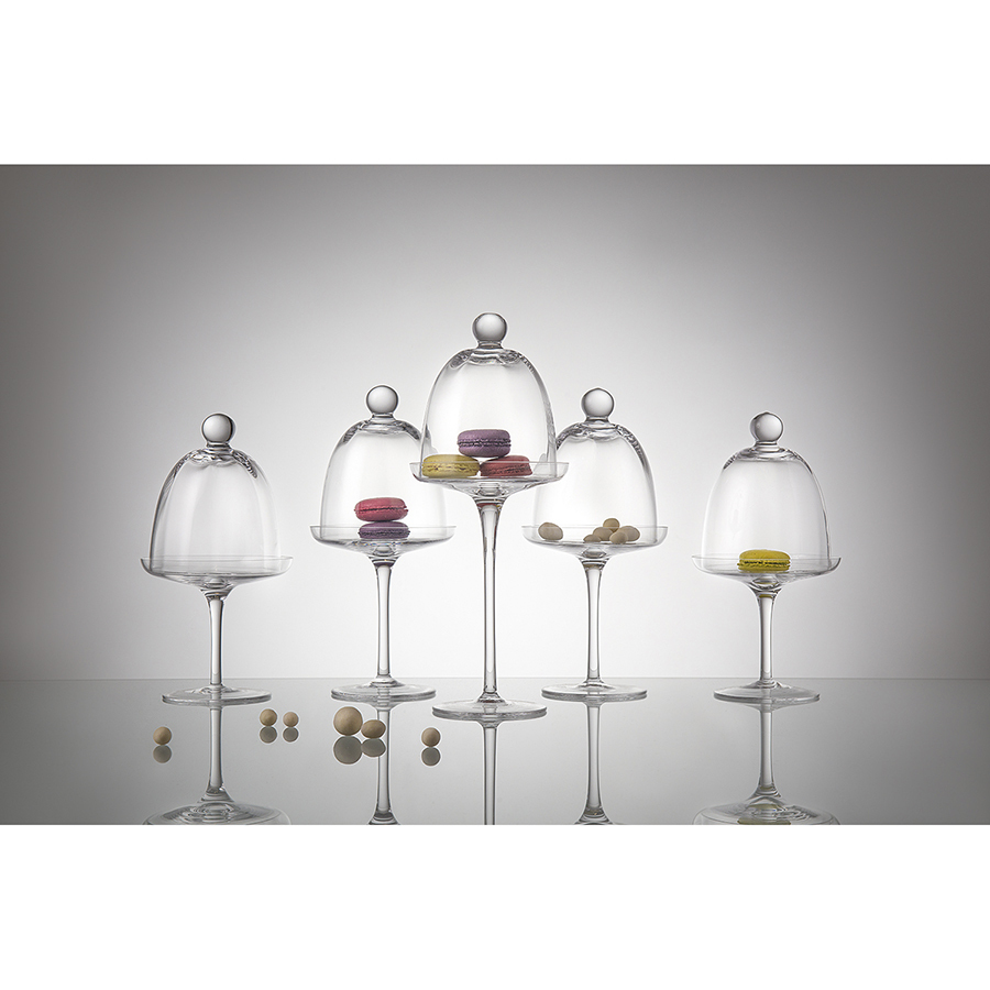 Сервировочное блюдо на ножке Sugary – стильный аксессуар для подачи десертов, который непременно украсит любой стол и приятно удивит даже самого изысканного гурмана. Под прозрачной крышкой-колпаком сладкое угощение выглядит еще более аппетитным и притягательным. Кроме выполнения декоративной функции стеклянный колпак обеспечивает длительное сохранение вкуса, аромата и свежести блюда. Высокая ножка на широком основании придает изделию особую элегантность. Стекло ручной работы гарантирует яркий блеск и премиальное качество.