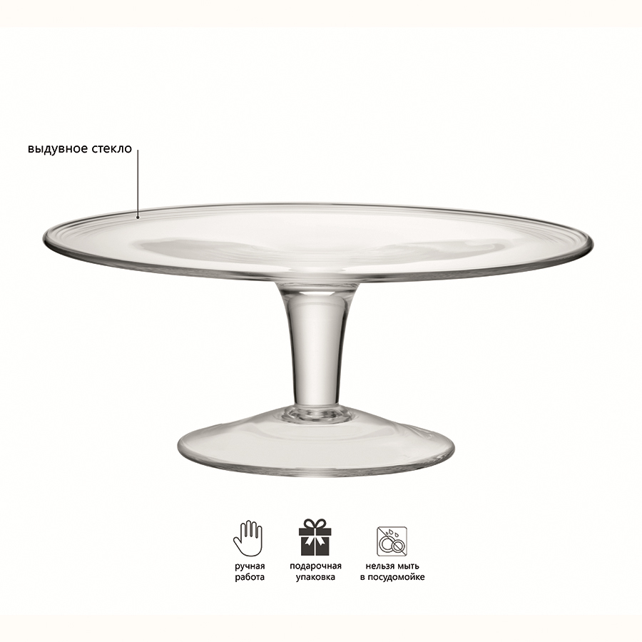 Подставка для торта из выдувного стекла отлично подойдет для сервировки кексов, тортов, пирогов, печенья, булочек и пирожных. Диаметр 31 см. Это изящная вещь, которая добавит уюта и придется по душе всем, кто любит устраивать домашние вечеринки. Подставка упакована в красивую коробку и станет прекрасным подарком друзьям, коллегам и близким. Serve — это сочетание современного дизайна и традиционного стекла ручной работы. Предметы коллекции подходят для сервировки самых разных блюд. Это практичная и стильные детали сервировки, которые придутся по душе тем, кто любит устраивать домашние вечеринки. Изделия рекомендуется мыть вручную в тёплой мыльной воде и вытирать насухо мягкой тканью. Мелкие пузырьки внутри выдувного стекла не являются браком (круглые пузырьки < 3 мм и овальные пузырьки < 5 мм): это допустимые индивидуальные особенности изделий, изготовленных вручную.