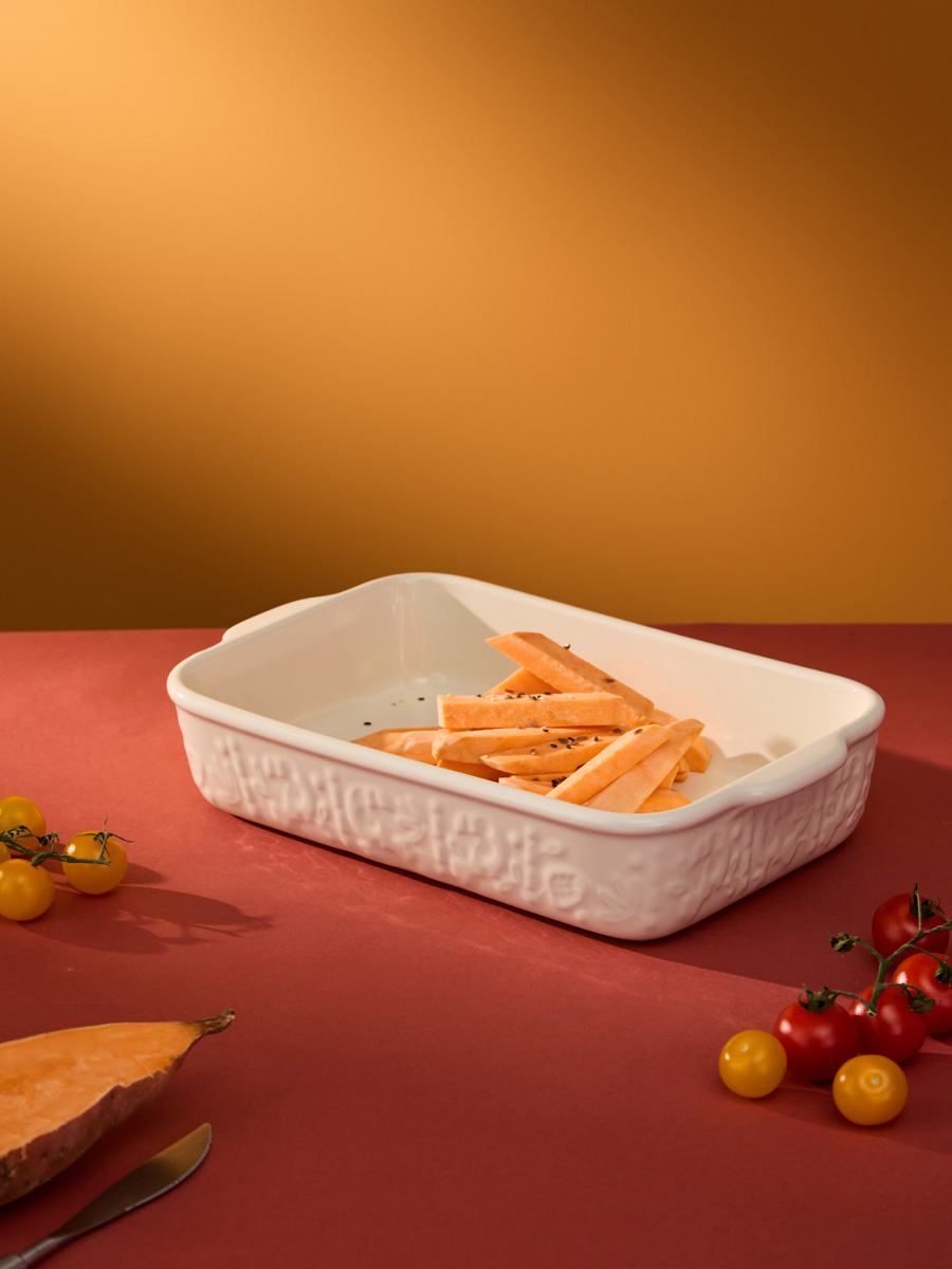 Блюдо для запекания из коллекции Birds of Paradise – качественная посуда из экологичной каменной керамики, которая облегчает процесс готовки и делает интерьер любой кухни более уютным. Отличительной особенностью серии является объемный узор природной тематики, добавляющий дизайну элегантные нотки. Благодаря высокой прочности и устойчивости материала к износу изделие не теряет привлекательный внешний вид на протяжении всего срока службы. Покрытие глазурью упрощает уход, обеспечивает декоративность и дополнительную защиту от внешних воздействий. Емкость идеально подходит для приготовления в духовке десертов и различных блюд.