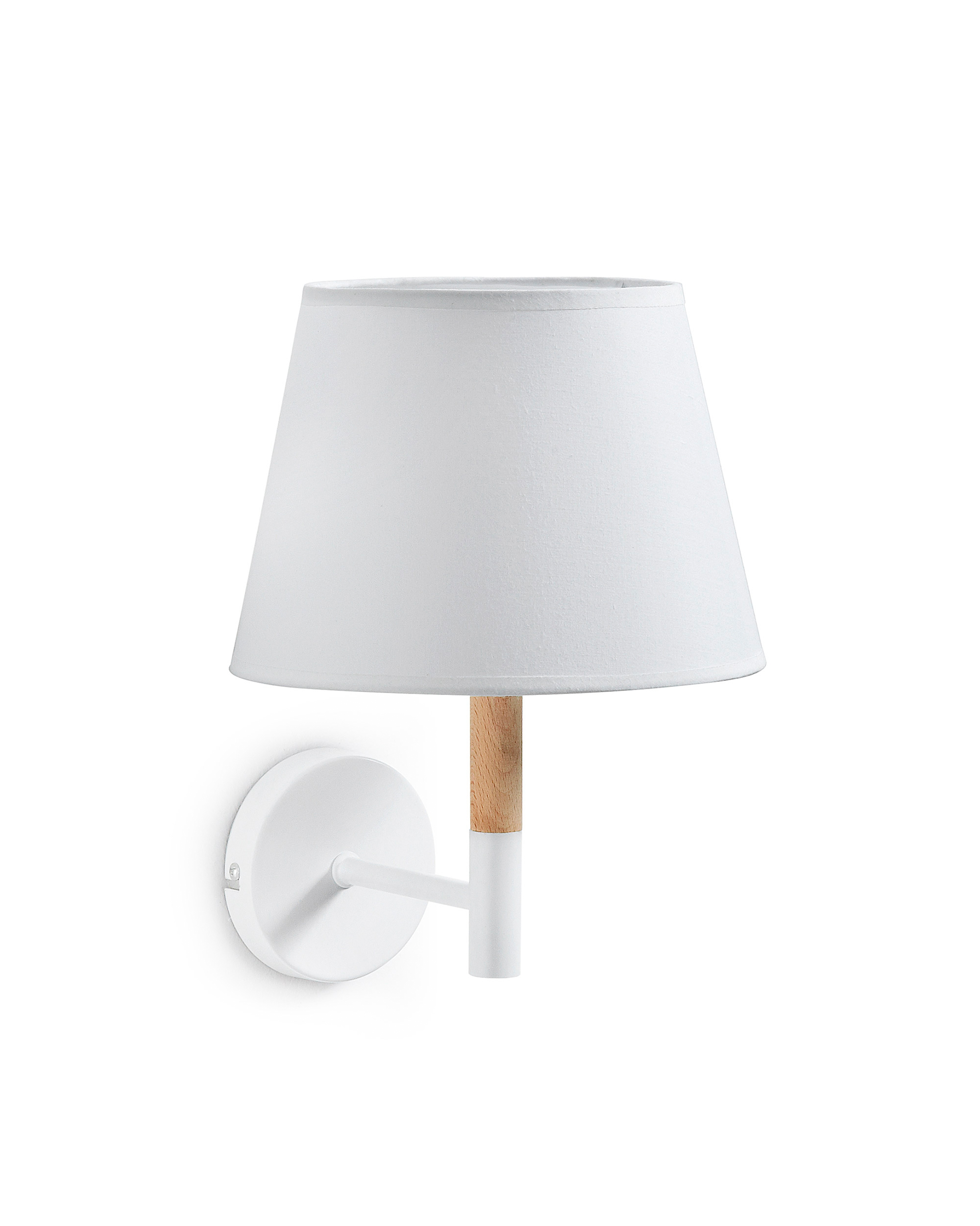 Настенный светильник с металлическим и деревянным кронштейном. Ткани из хлопчатобумажной ткани. Для лампочки E-14 не прилагается.