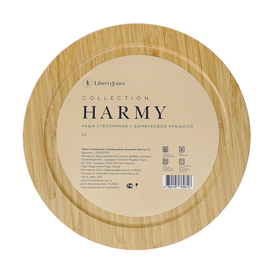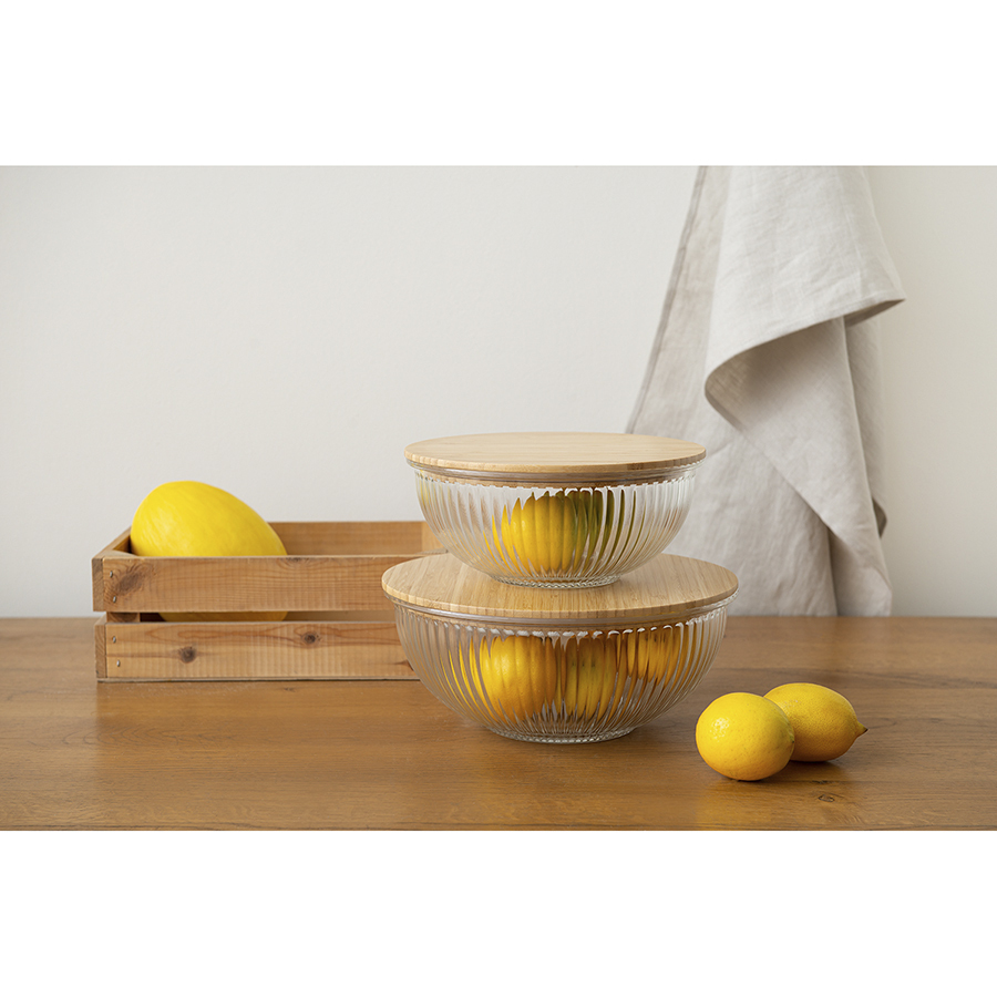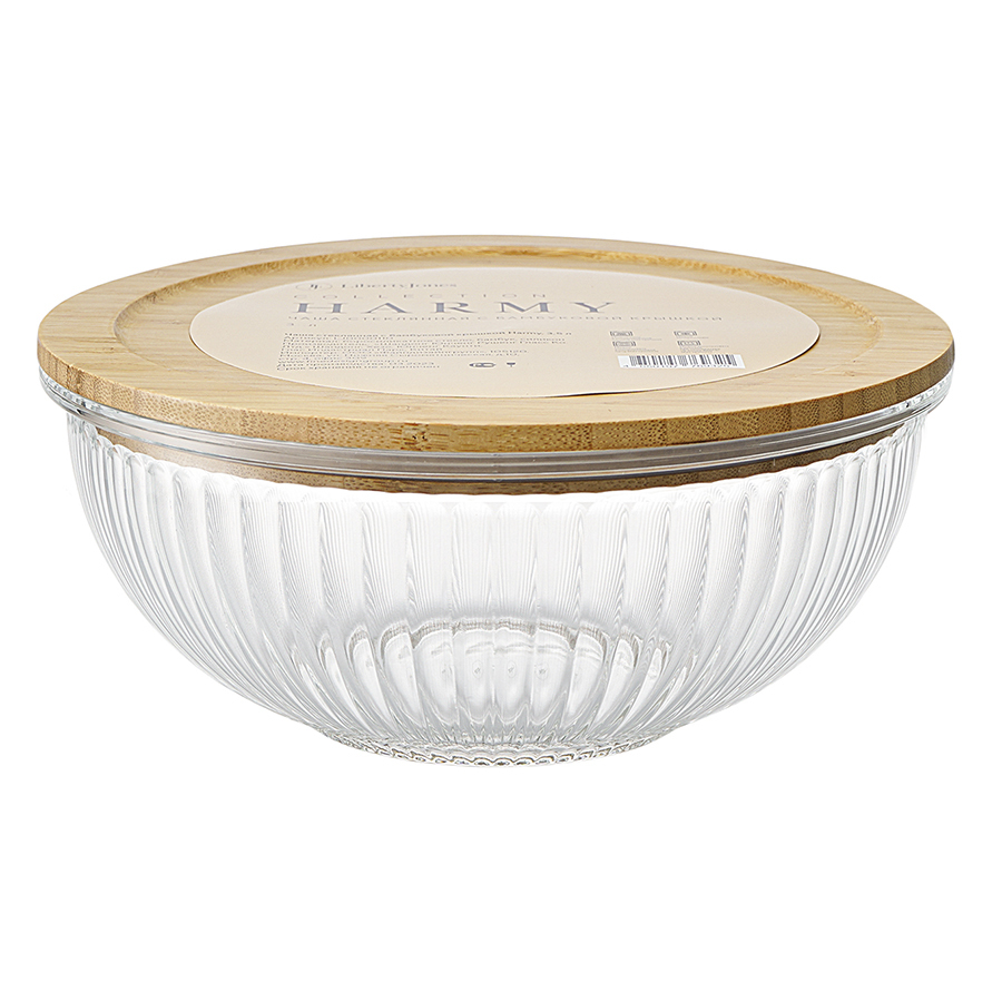 Чаша стеклянная с бамбуковой крышкой harmy, 2 л