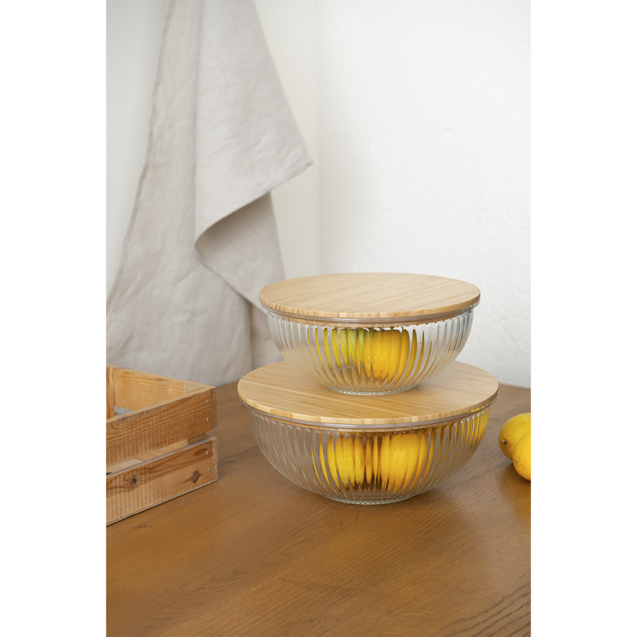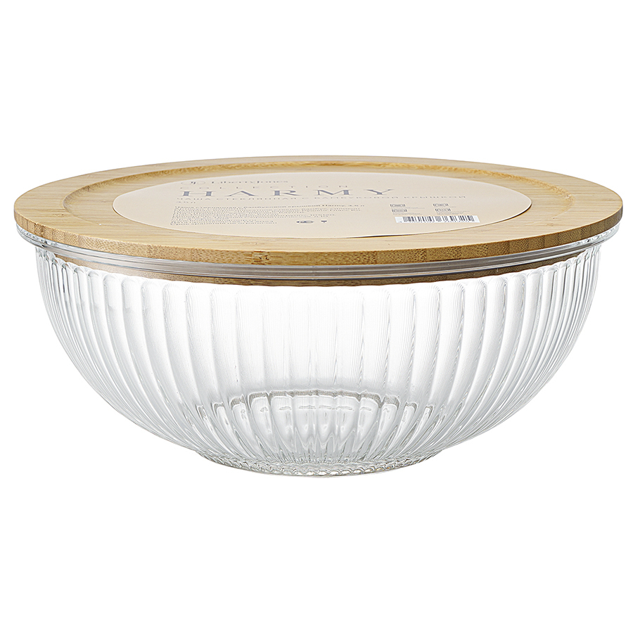 Чаша стеклянная с бамбуковой крышкой harmy, 3,5 л