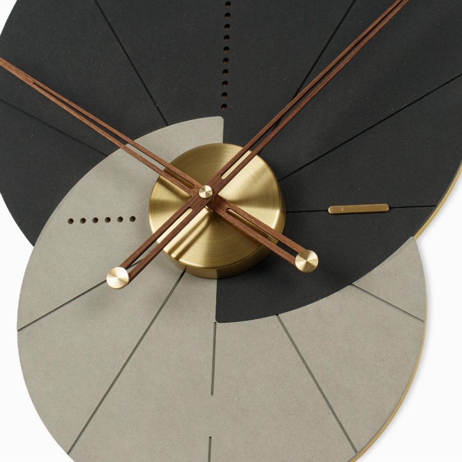 Глубокий черный цвет в сочетании с серыми акцентами создает утонченный и современный образ, который легко вписывается в любой интерьер. Стекловолокно добавляет легкость и изящество, придавая часам уникальный визуальный эффект.