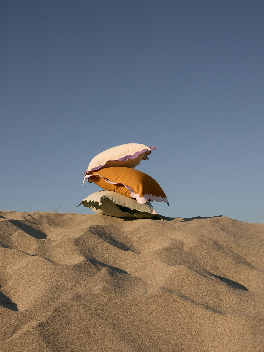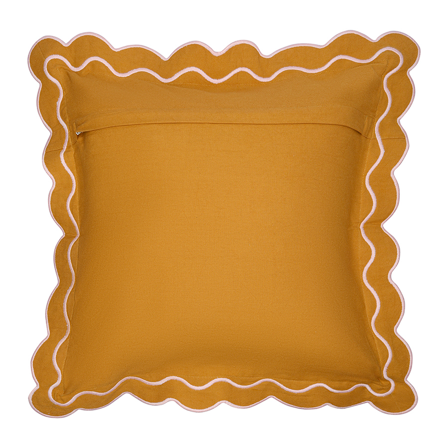 Чехол на подушку с контрастным кантом розового цвета из коллекции Trendy Ruffles привнесет свежий акцент в оформление гостиной, спальни или зоны отдыха. Текстиль с волнистой отделкой, напоминающей изящные раковины морских гребешков, стал ярким элементом стиля Ар Деко – и сейчас возвращается в моду, появляясь в самых актуальных интерьерных решениях.