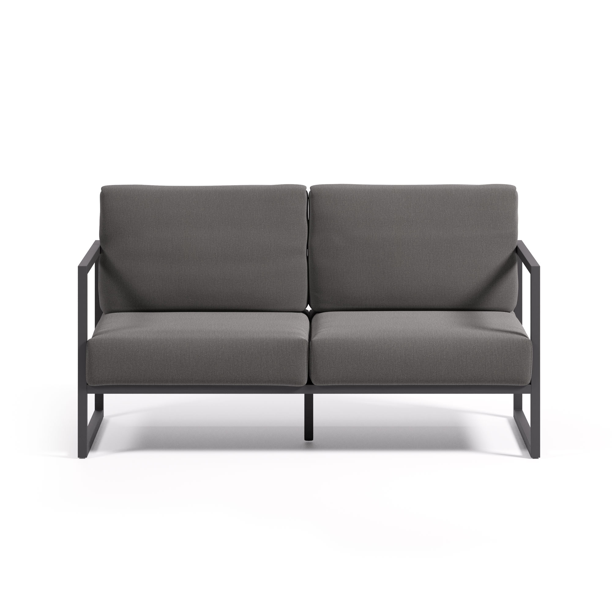 Диван имеет прямоугольную форму, рассчитан на 2-3 человека. Металлический каркас (алюминий) покрыт черной краской, которая защищает от коррозии и ультрафиолета.