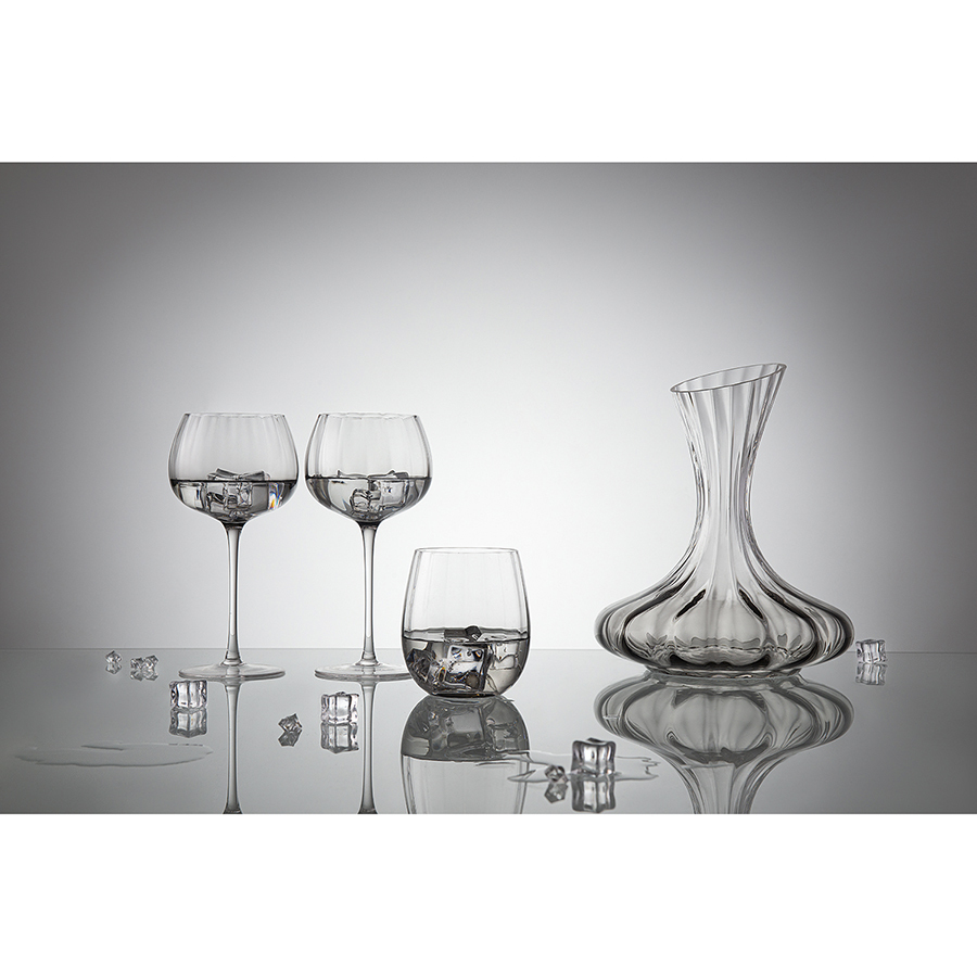 Декантер Gemma Agate позволит раскрыть все тонкости аромата, улучшить вкусовые качества вина и придать оформлению стола особый шарм. Емкость имеет широкое основание и узкое горлышко со скошенным краем. В графине такой формы напиток обогащается кислородом, приобретает более мягкий и сбалансированный вкус. Процедура естественной аэрации особенно рекомендована молодым винам, насыщенным танинами. Стоит им “подышать”, и из них уходит чрезмерная терпкость и вязкость. Для каждого напитка время декантирования рассчитывается индивидуально, в зависимости от выдержки. Комбинируйте предметы из одноименной линейки – декантер, бокалы, стаканы для воды, чтобы создать завершенную композицию и удивить гостей изысканной сервировкой.