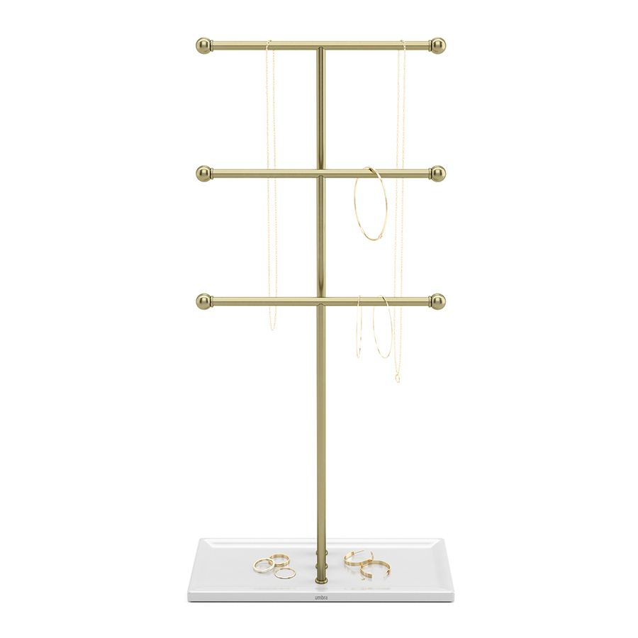 Держатель для украшений Trigem — это элегантное решение для хранения драгоценностей. Три перекладины, расположенные на разной высоте, создают идеальное пространство для размещения ожерелий. Основание с бортиками станет небольшим, но практичным местом для хранения колец, серег и других аксессуаров.