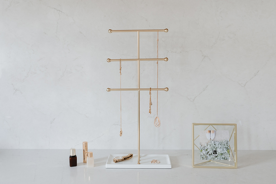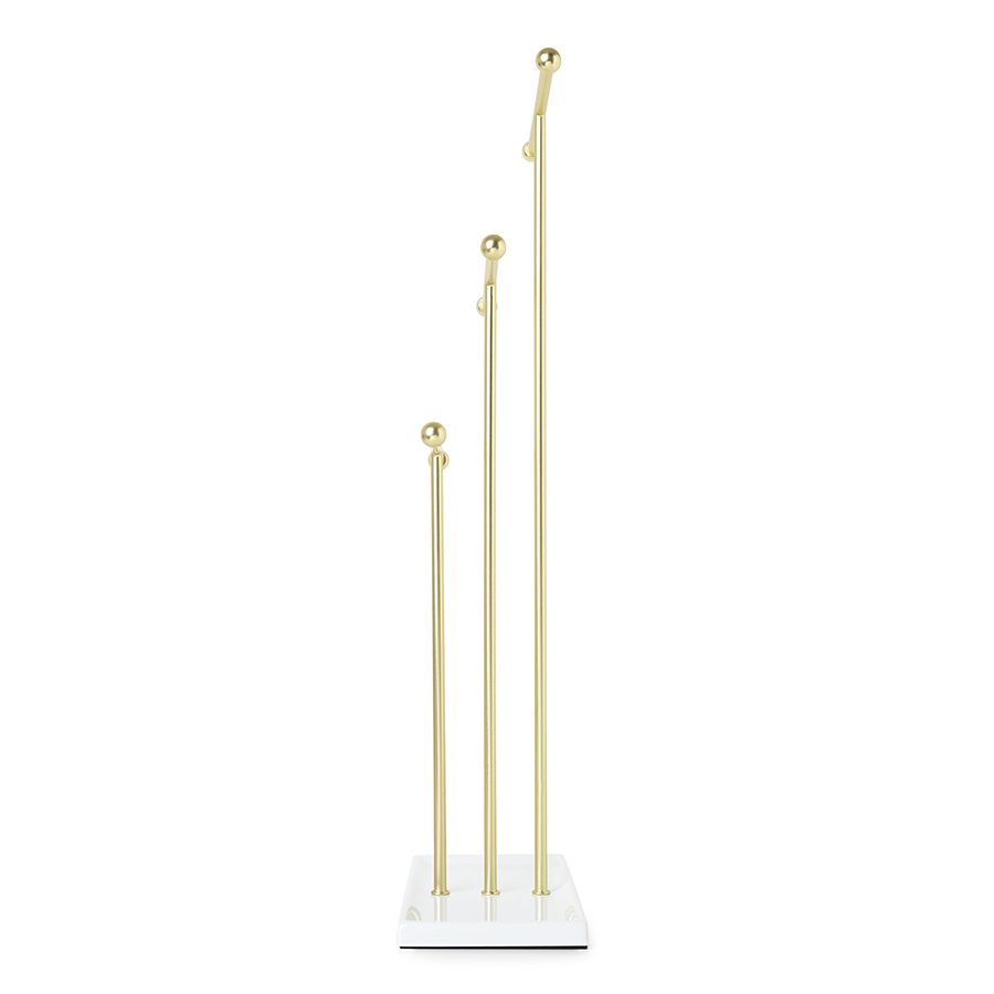 Высокотехнологично и высокофункционально: трехярусный держатель для украшений продуман для мелочей. Самый высокий - для бус, средний - для длинных серег и цепочек, малый - для браслетов, сережек, колец. Плюс подставка держателя как дополнительное пространство для часов или клипс. Если ваши украшения хранятся в коробке или еще хуже - валяются в ящике стола, то самое время организовать их!