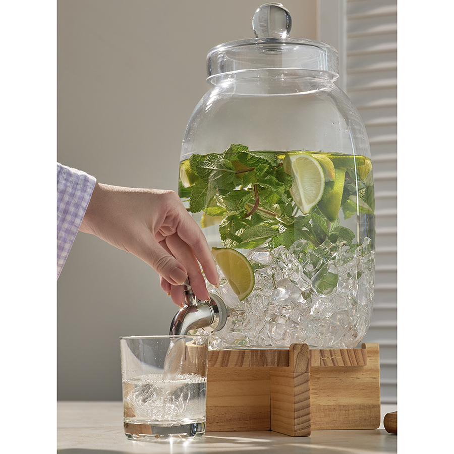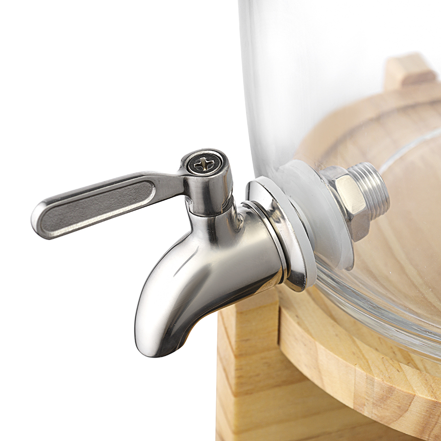 - Удобная конструкция с краником позволяет легко наполнять стаканы или бокалы напитками, исключая их проливание.