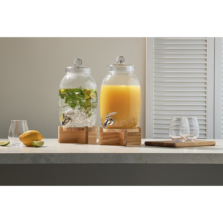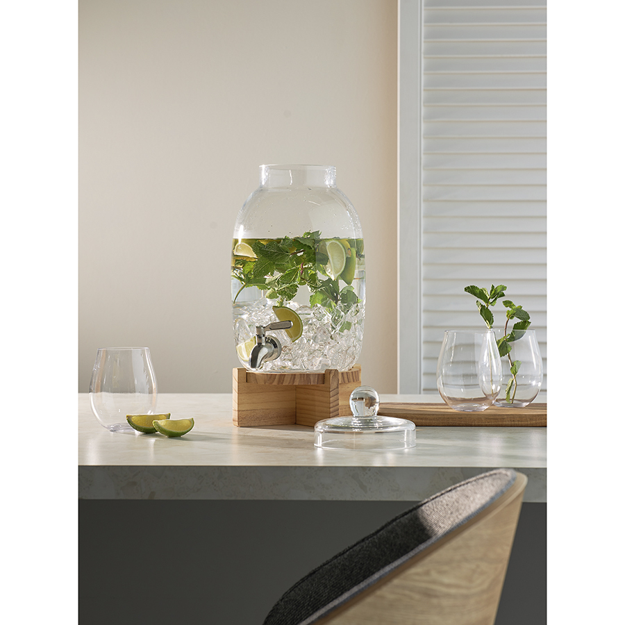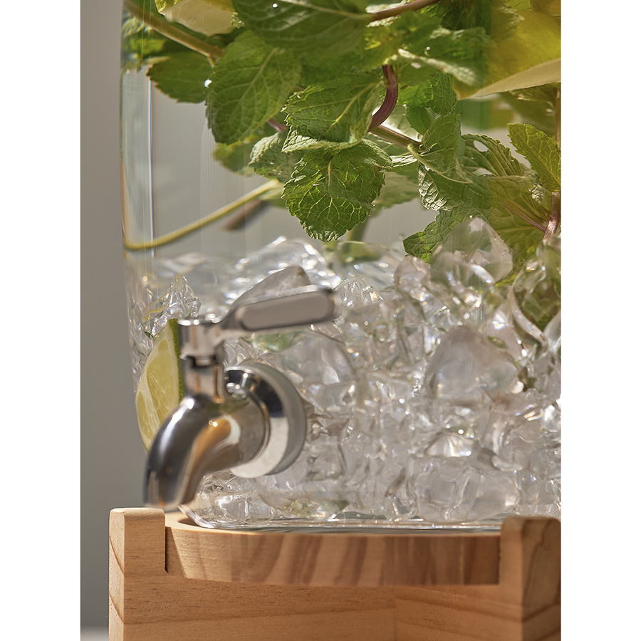 Диспенсер на деревянной подставке Flo – прекрасное решение для кухни или бара. Этот стильный и удобный в использовании аксессуар станет изюминкой любой сервировки и облегчит процесс подачи напитков гостям. Он отлично подойдет для морса, лимонада, кваса, сока и других холодных напитков.