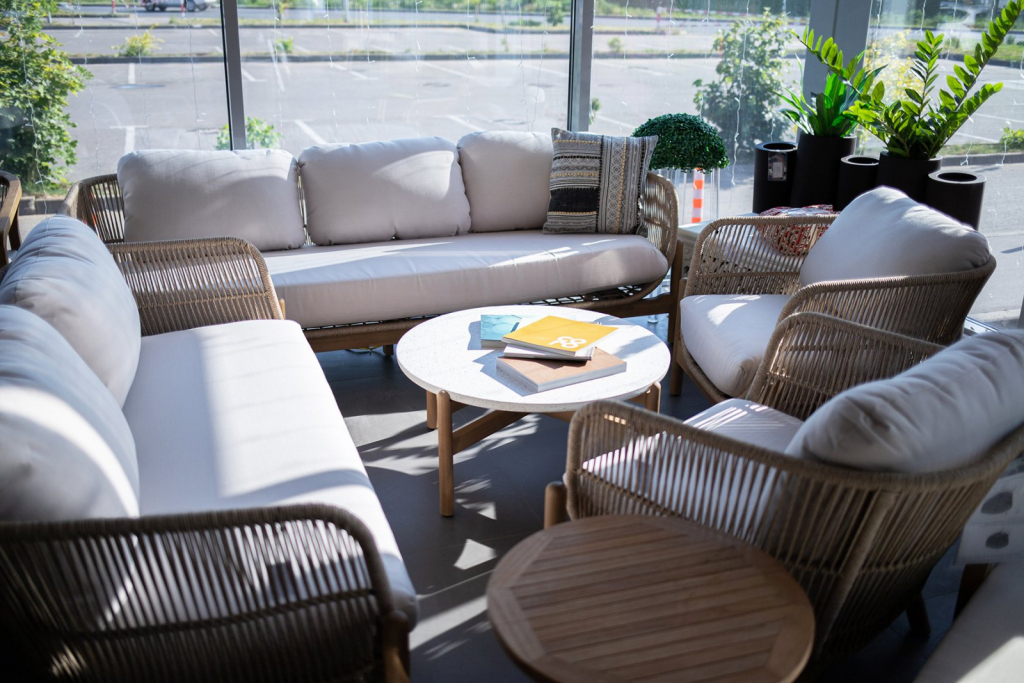 - Подушки в комплекте, ткань подушек - олефин, наполнитель - толстый поролон. Материалы устойчивы к УФ-излучению и другим погодным воздействиям.