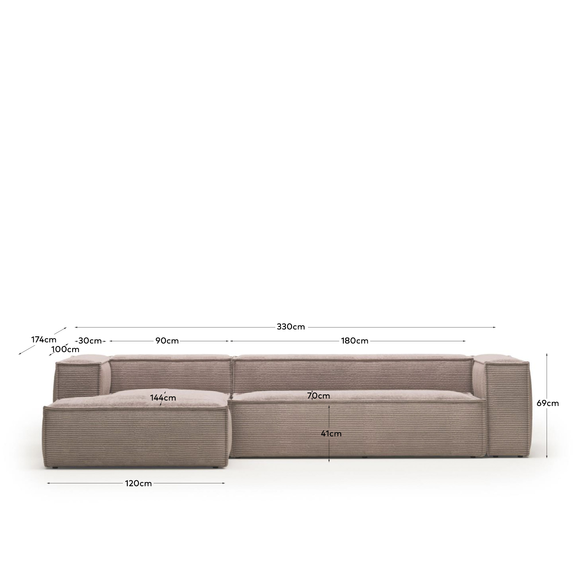 Размер прямых моделей: длина – 210 или 240 см, глубина – 100 см, высота – 69 см, Вес – 78,8 или 88,6 кг.