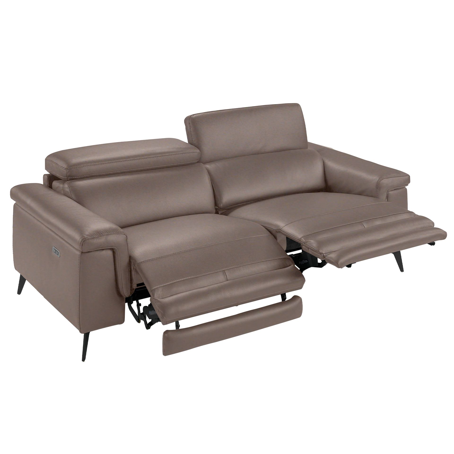 3-местный диван, обитый коровьей кожей цвета VISON, со структурой из массива натуральной сосны, независимые шарнирные подголовники. Прочные стальные ножки, окрашенные черной эпоксидной смолой.