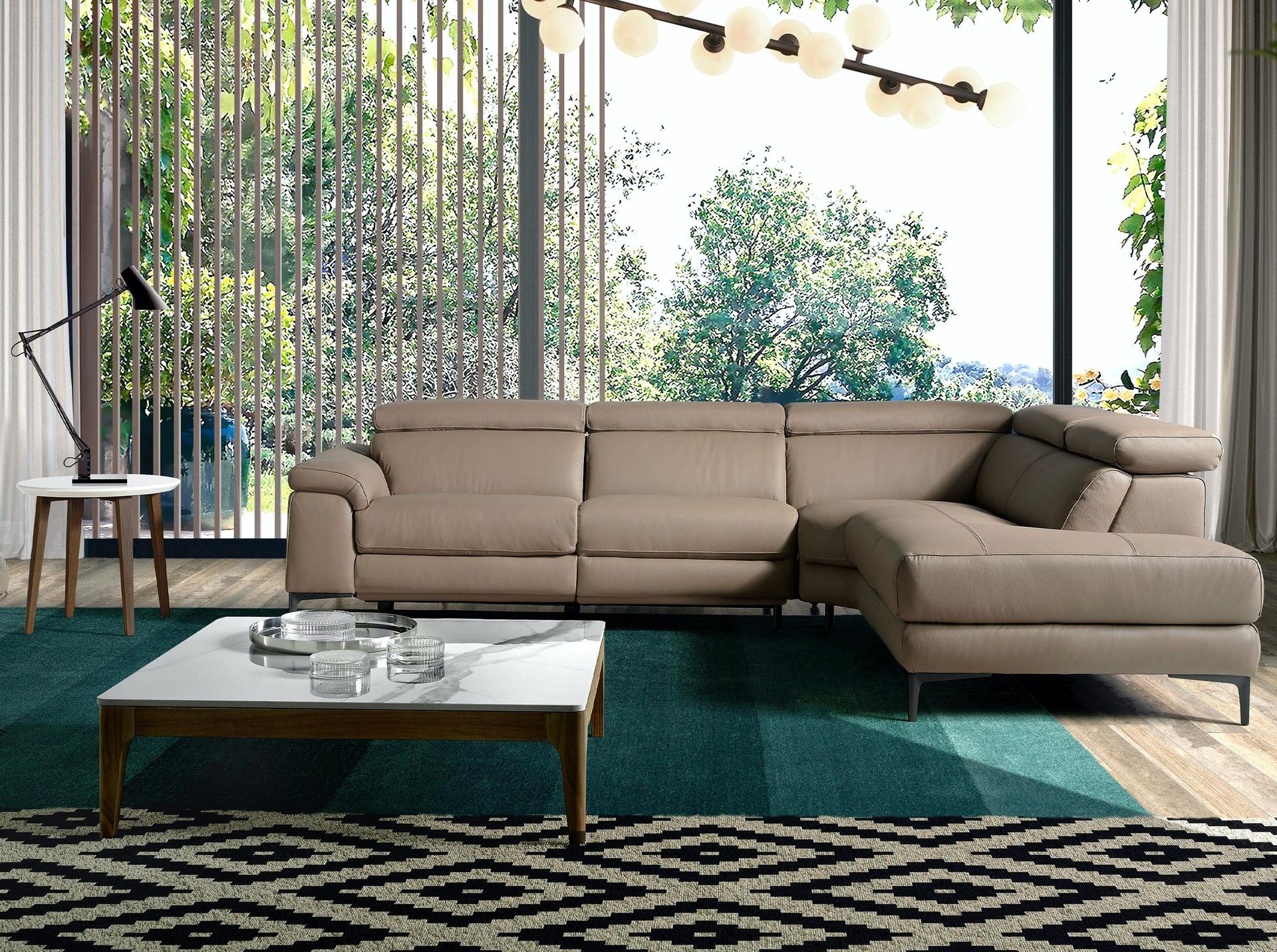 Угловой диван 5320 от фабрики Angel Cerda – королевский размер и материалы высочайшего качества. Угловой диван 5320 станет прекрасным интерьерным решением для больших гостиных, выполненных в современном стиле. Он необыкновенно лаконичен и буквально приковывает взгляд своим мастерским, безукоризненным исполнением. А эргономика, заложенная в конструкции, впечатлит даже самого требовательного поклонника европейской мебели. Модель доступна с углом поворота на левую или на правую сторону. Диван имеет каркасную конструкцию, выполненную из сосны. Дерево в основании – это гарантия долговечности и надежности, даже при интенсивной эксплуатации. Набивка из пеноматериала плотностью 20 кг/м3 обеспечивает анатомический комфорт, не теряет своей упругости при высоких весовых нагрузках. Обивочное полотно – натуральная кожа толщиной 1 мм цвета таул. Производитель также предлагает другие оттенки обивки, которые представлены в каталоге. Изделие оснащено регулируемыми независимыми подголовниками под каждое место и встроенным электрическим раскладным механизмом в крайнее сиденье. Простым нажатием кнопки (находится на внешней стороне подлокотника) сиденье превращается в шезлонг. Ножки высотой 15 см сделаны из полированной нержавеющей стали темного цвета. Они придают модную элегантность и гарантируют стойкость к высоким весовым нагрузкам. Размеры: длина – 295 см, высота – 97 см, глубина – 95 см. Вес – 165 кг. Потребуется минимальная сборка. Инструкция и крепеж включены в комплектацию.
