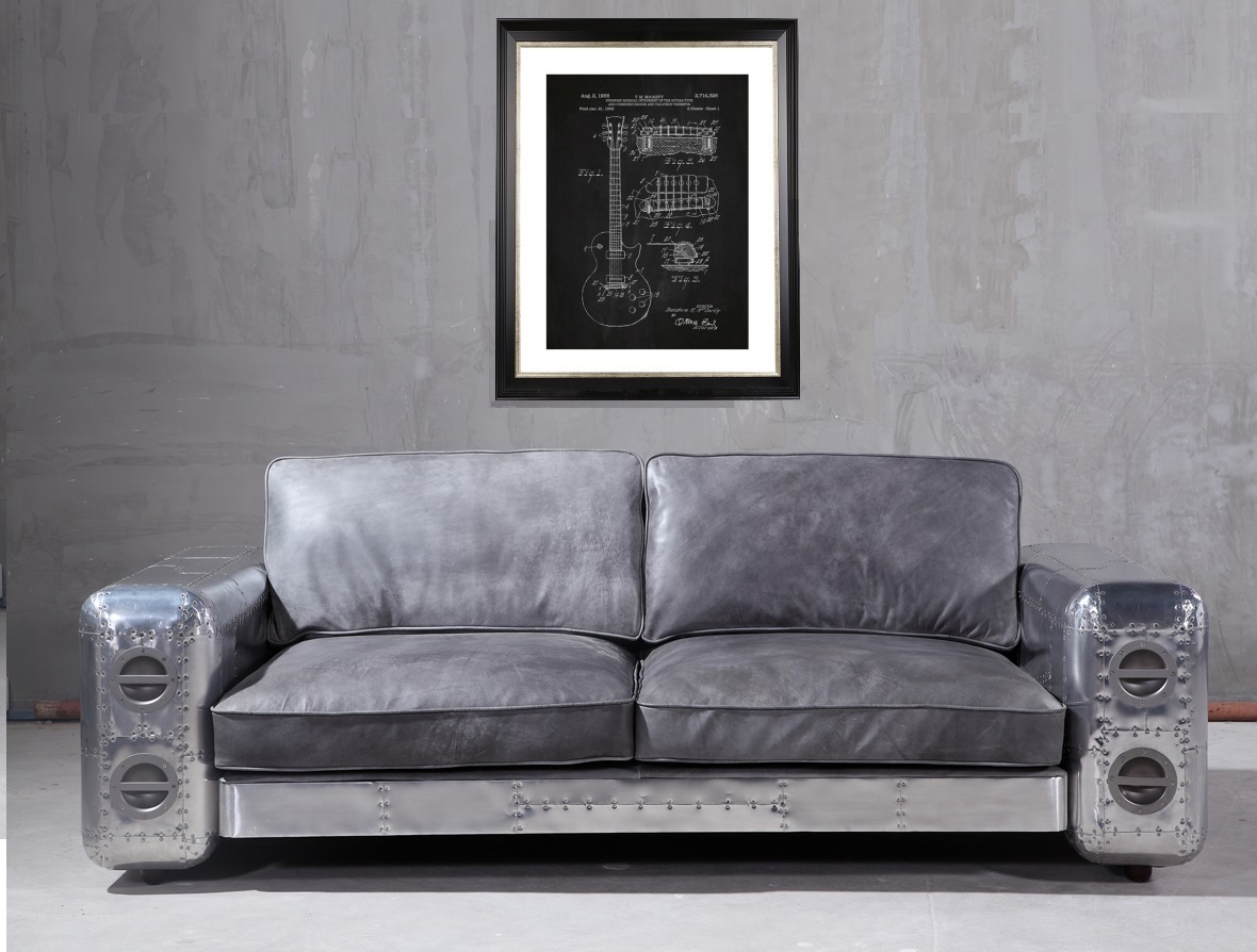 Диван представлен в отделке из алюминиевых листов с заклепками. Ручная работа.