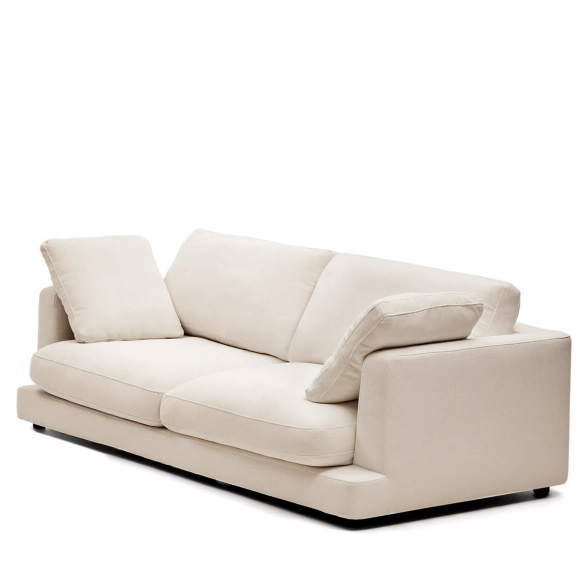 Диван Gala от фабрики La Forma – бескомпромиссный комфорт и габариты. Диван Gala сделает вашу гостиную центром притяжения. Впечатляющие габариты и запредельный комфорт – две главные особенности этой модели Светлый цвет обивки защищен от пятен, поэтому вам не стоит беспокоиться о случайно пролитых напитках. Сделайте свою обстановку светлой и современной. Пусть для отдыха будет много места. Диван имеет каркасную конструкцию из сосновой древесины. Каркас обшит синтетическим наполнителем и обтянут плотной износостойкой тканью. Материал пропитан защитой от пятен, обладает высокой износостойкостью, прочностью на разрыв. Цвет обивки на ваш выбор – бежевый или белый. Диван дополнен подушками со съемными чехлами. Чехлы можно стирать в машинке на деликатном режиме. Наполнитель – синтетическая пена с эффектом перьевого пуха. Она не впитывает запахи, обеспечивает комфорт и удобство. Диван установлен на деревянных ножках с накладками для защиты от повреждений. В коллекции представлено две модели – для размещения трех и четырех человек. Максимальный вес нагрузки – 300 или 450 кг. Размеры: ширина – 210/300 см, высота – 87/87 см, глубина – 193/193 см Вес – 108/116 кг. Возможно потребуется минимальная сборка. Инструкция и крепеж включены в комплектацию. В коллекции Gala также представлены кушетка и пуфик