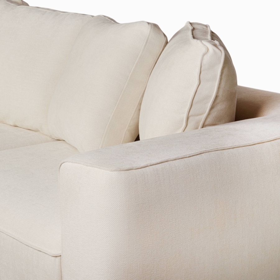 Диван отличают глубокие сиденья и объемные, мягкие подушки, приглашающие к полному расслаблению. Лаконичные линии и низкие, практически незаметные, ножки придают дивану элегантность и воздушность.