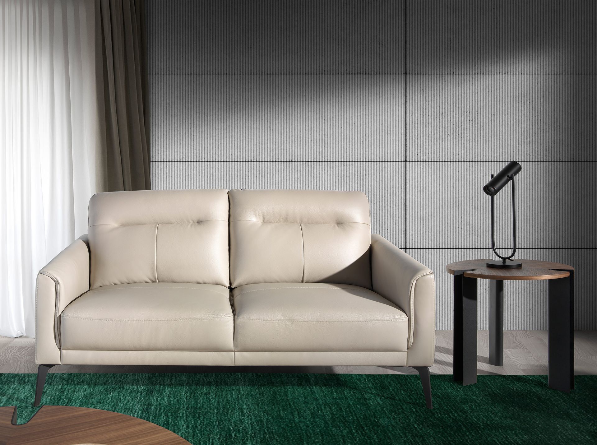 2-местный диван с обивкой из натуральной кожи. Внутренняя структура из натуральной сосны и ножки из массивной нержавеющей стали, окрашенной черной эпоксидной смолой.