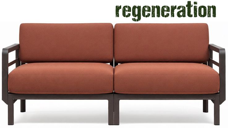 - Каркас выполнен из регенерированного стеклопластика, рожденного в рамках проекта Regeneration и полученного путем переработки полипропиленовой мебели. Выдерживает негативное воздействие окружающей среды (осадки, ультрафиолет).