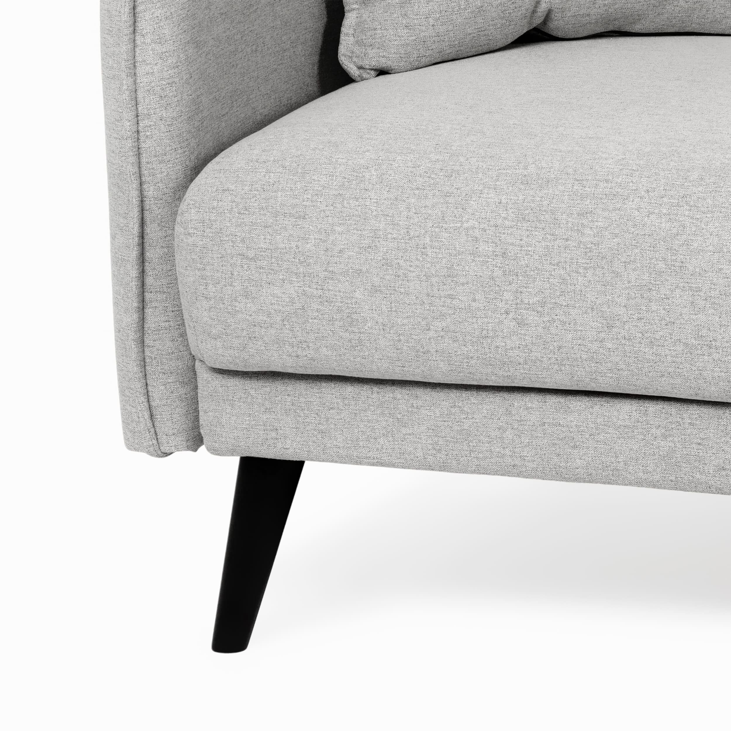 Диван отличается прямыми, лаконичными линиями и сдержанным дизайном. Съёмные подушки на молнии обеспечивают дополнительный комфорт и удобство в уходе. Высокие ножки модели смотрятся не только эстетично, но и облегчают уборку под диваном.