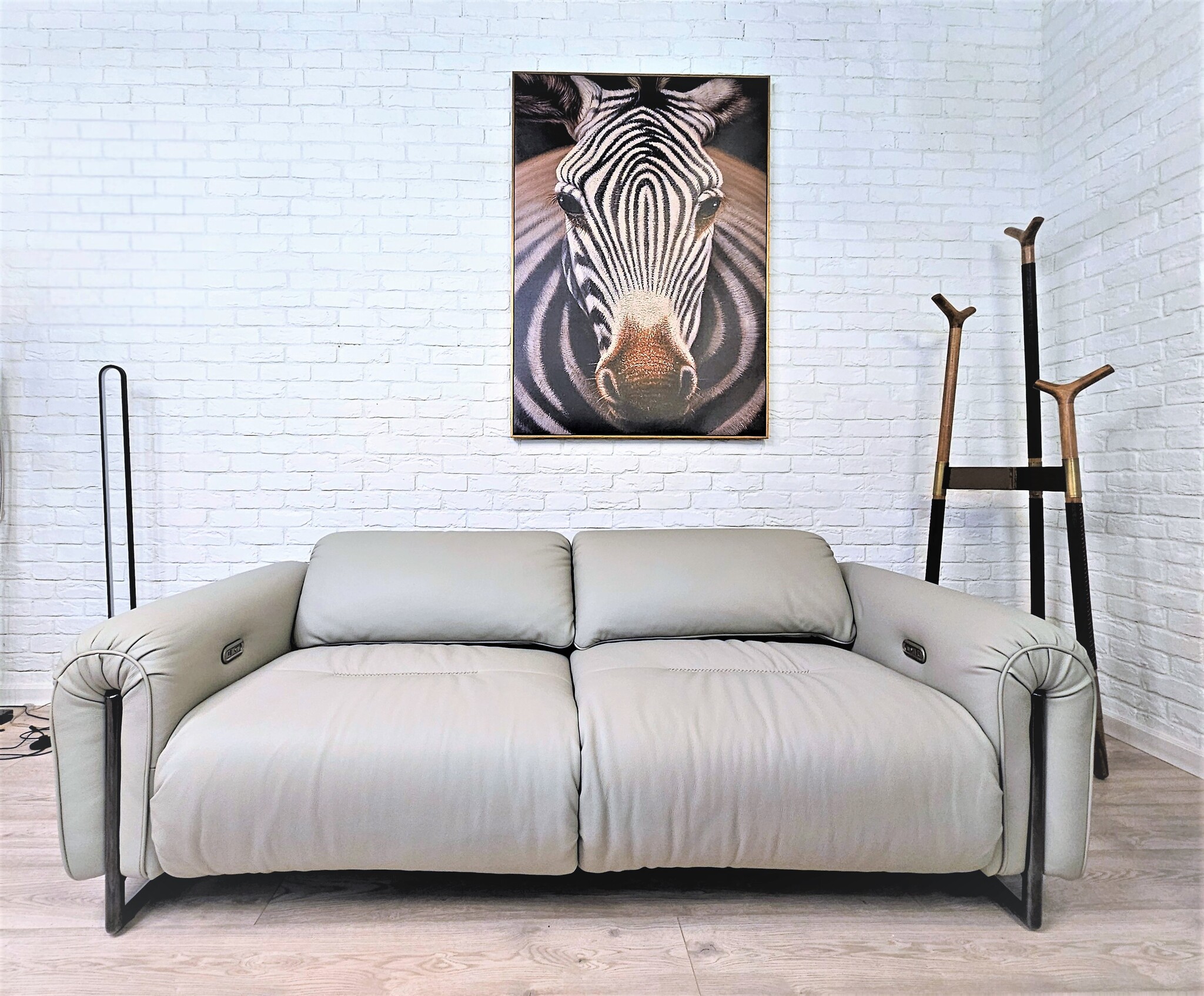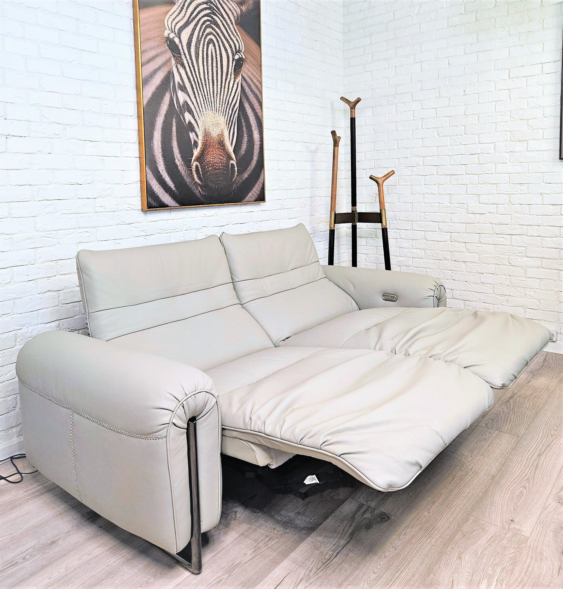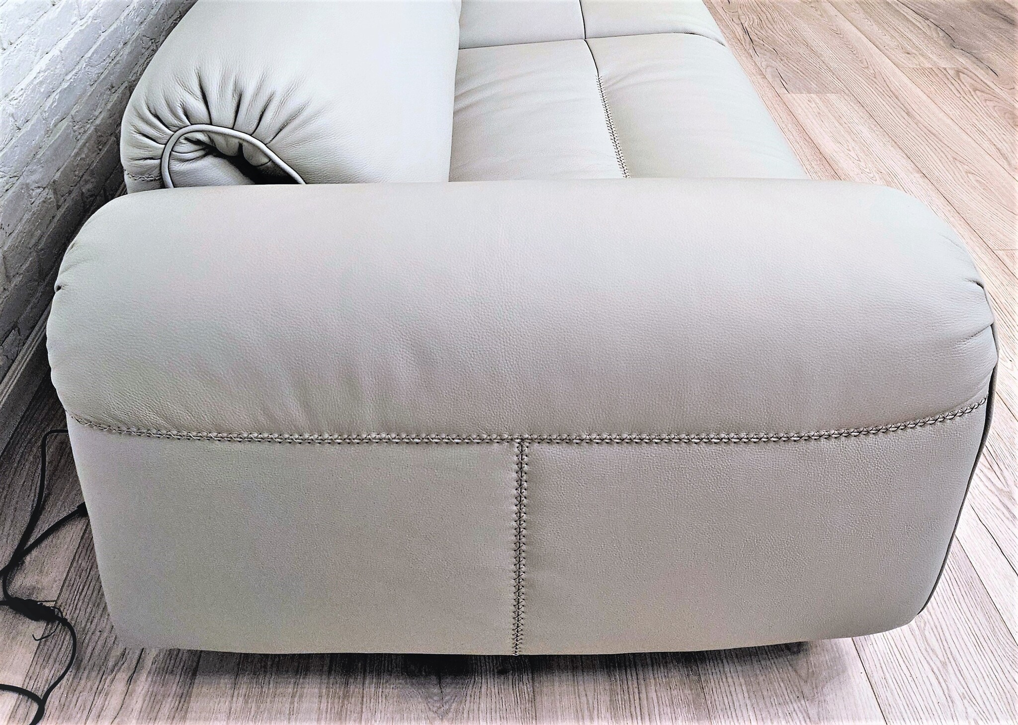 Диван-реклайнер оснащен двумя раздвижными электро-механизмами и регулируемыми подголовниками, позволяющими подобрать наиболее удобное положение.