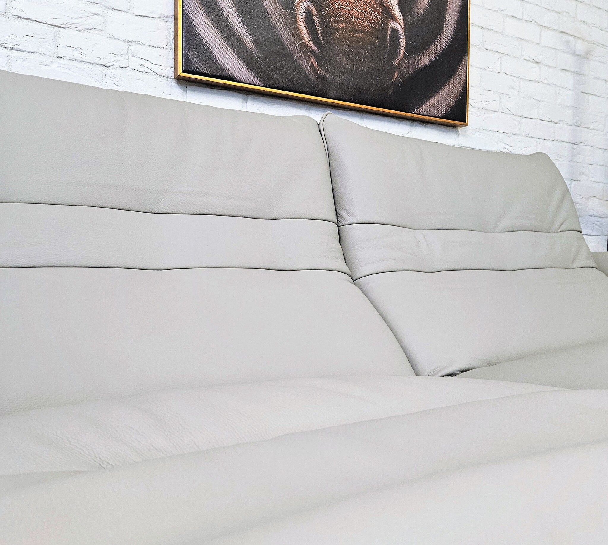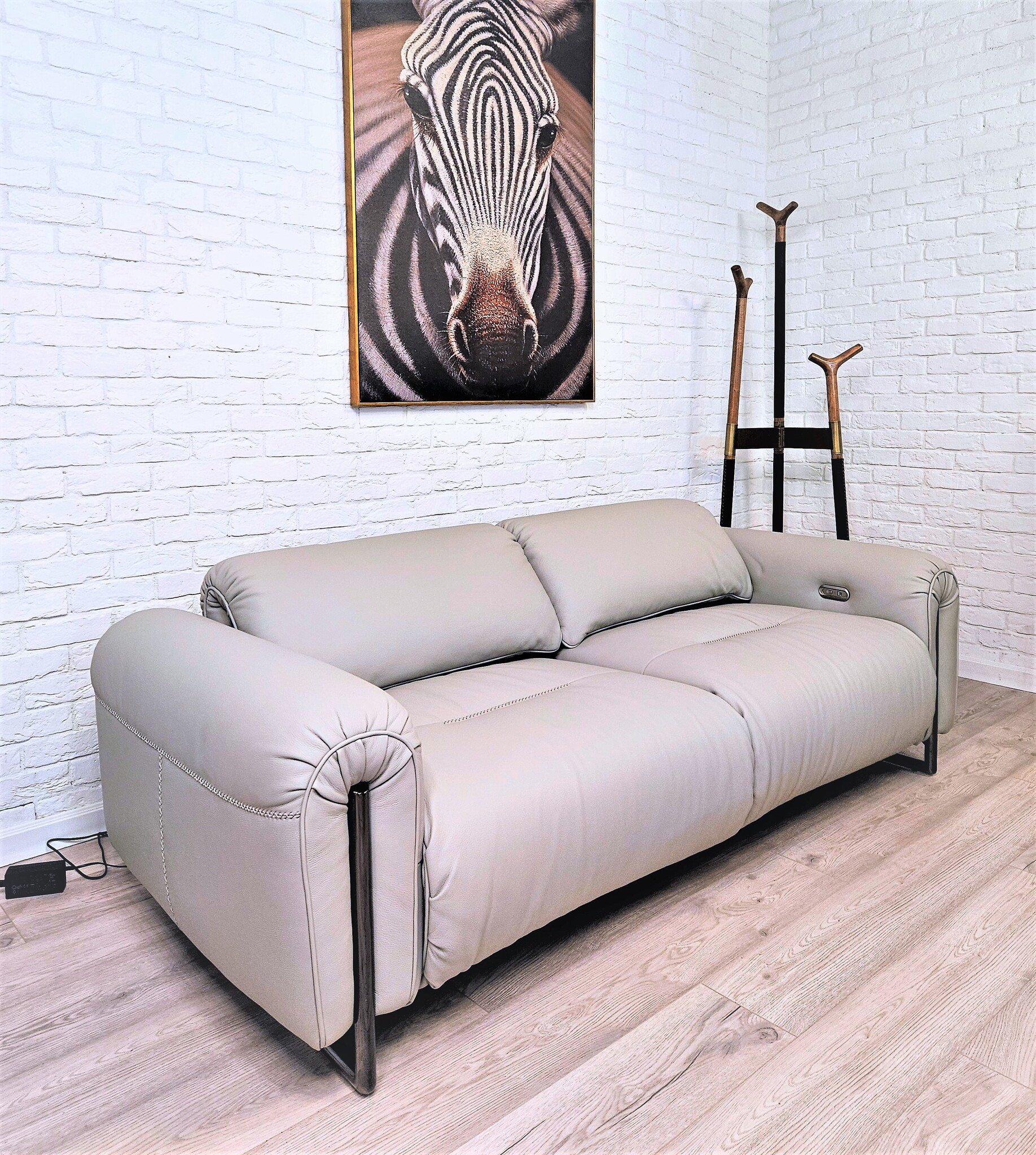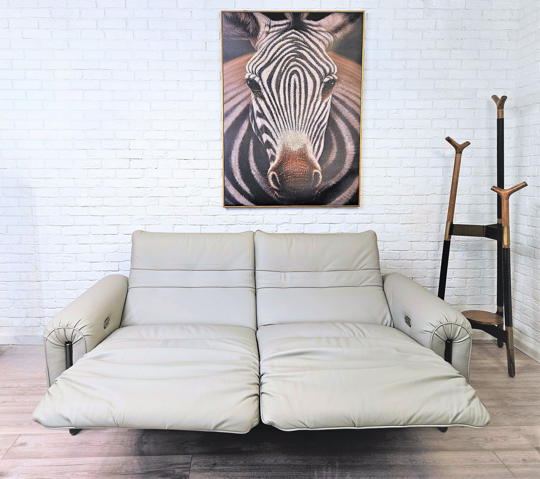 Диван-реклайнер оснащен двумя раздвижными электро-механизмами и регулируемыми подголовниками, позволяющими подобрать наиболее удобное положение.
